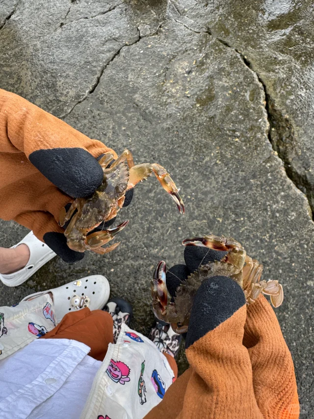 ✔️小朋友赶海要穿赶海服或长袖长裤,带手套,大人千万不要穿洞洞鞋礁石🪨很滑!