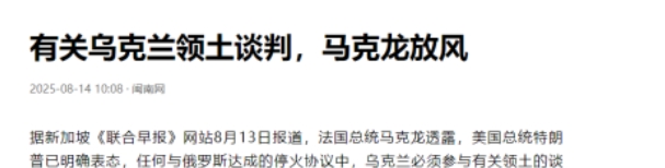 太尴尬了!   最近有消息称法国总统马克龙给乌克兰总统泽连斯基出了个主意,建议乌克兰先承认俄罗斯占领的领土属于俄罗斯,以此换取美国和欧洲的安全保障,等安全保障到手后再翻脸不认账。   这个说法乍一听挺“精明”,但仔细一琢磨,里面的漏洞和风险可不少。   俄乌冲突打了三年多,欧洲国家虽然嘴上喊着支持乌克兰,但心里的小算盘也在不停拨拉。   一方面,战争导致欧洲能源价格飙升、难民潮汹涌,经济压力巨大;另一方面,美国在这场冲突中的态度越来越捉摸不定,让欧洲担心自己被“甩锅”。   马克龙作为欧洲的重要领导人,或许想通过推动某种“折中方案”来缓解欧洲的安全压力。   毕竟,如果乌克兰真的接受领土换安全的交易,欧洲国家就能名正言顺地减少军事援助,把精力放回自家的经济重建上。   但问题在于,这种想法太天真了。首先,领土问题是乌克兰的核心利益,泽连斯基要是敢松口,立马就会被扣上“卖国贼”的帽子,国内政治动荡不说,国际社会的支持也会瞬间崩塌。   其次,欧洲国家之间的立场并不统一。波兰、波罗的海国家等东欧国家坚决反对向俄罗斯妥协,而德国、法国等西欧国家虽然希望尽快结束战争,但也不敢明目张胆地支持割让领土。   马克龙的这个“主意”,很可能还没落地就会被欧洲内部的反对声浪淹没。   乌克兰宪法明确规定,任何领土变更都必须经过全民公投。就算泽连斯基一时头脑发热同意了马克龙的建议,乌克兰议会和民众也不可能答应。   更重要的是,国际社会普遍承认乌克兰的主权和领土完整,联合国大会多次通过决议谴责俄罗斯的军事行动。   如果乌克兰真的承认领土被俄罗斯占领,那就等于自己打自己的脸,以后再想通过外交途径要回领土就难上加难了。   有人可能会说,乌克兰可以先假意承认,等安全保障到手后再反悔。但这种“小聪明”在国际政治中根本行不通。   安全保障协议不是菜市场买菜,说撕毁就撕毁。欧洲国家要是发现乌克兰出尔反尔,不仅会立刻撤回安全承诺,还会对乌克兰失去信任,甚至可能对其实施制裁。   到时候,乌克兰不仅领土要不回来,连现有的国际支持都会化为泡影,真正变成“孤家寡人”。   虽然有声音说乌军很难夺回相关地区,但最近的战场动态却显示,乌克兰的反攻并非毫无希望。   2025年8月,乌克兰军方宣布组织9个精锐旅展开反击,成功夺回了“顿巴斯防线”的部分区域。虽然俄军在某些地段仍占据优势,但乌军通过无人机、战斗机器人等新技术手段,正在逐步扭转被动局面。   更重要的是,乌克兰得到了西方国家的持续军事援助,包括先进的防空系统、远程导弹和情报支持。只要这种援助不断,乌军就有能力对俄军发动更大规模的反攻。   退一步说,就算乌军暂时无法完全夺回被占领土,也不意味着乌克兰就只能接受领土换安全的屈辱条件。国际社会对俄罗斯的制裁正在不断加码,俄罗斯的经济和军事资源也在战争中被大量消耗。   随着时间的推移,俄罗斯的战争潜力会逐渐枯竭,而乌克兰的国际支持会越来越稳固。在这种情况下,坚持不妥协、等待时机反攻,才是更明智的选择。   如果乌克兰真的按照马克龙的建议行事,将会引发一系列严重的国际政治后果。首先,这会被俄罗斯视为“胜利”,鼓励其在其他地区采取更激进的扩张政策。   其次,这会破坏二战后建立的国际秩序,让“强权即公理”的丛林法则重新抬头。最后,这会让其他面临领土争端的国家感到恐慌,担心自己成为下一个被牺牲的对象。   欧洲国家也应该清醒地认识到,牺牲乌克兰的领土主权来换取自身的安全,是一种短视的行为。   乌克兰是欧洲的“防火墙”,如果乌克兰倒下了,俄罗斯的势力将直接威胁到整个欧洲的安全。只有坚持支持乌克兰,维护国际法和国际秩序,欧洲才能真正实现长治久安。   综上所述,所谓马克龙建议乌克兰用领土换安全的说法,既不符合国际政治的基本逻辑,也违背了欧洲国家的整体立场。   乌克兰的领土主权不容侵犯,任何试图通过牺牲他国利益来换取自身安全的行为,最终都将搬起石头砸自己的脚。   对于乌克兰来说,坚持抵抗、争取国际支持、等待反攻时机,才是唯一正确的选择。   对于欧洲国家来说,加大对乌克兰的军事援助、继续对俄罗斯实施制裁、推动建立更稳固的欧洲安全架构,才是维护自身利益的长远之计。   而对于俄罗斯来说,只有放弃扩张野心,回到谈判桌前,才能避免陷入更深的战争泥潭。   在国际政治的舞台上,没有捷径可走,更没有便宜可占。任何试图通过阴谋诡计达成目的的行为,最终都将付出惨重的代价。   乌克兰的未来,只能由乌克兰人民自己决定;欧洲的安全,也只能建立在尊重国际法和国家主权的基础之上。