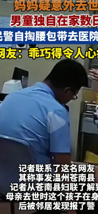 泪崩了!温州,一名女子闻到邻居家里一阵恶臭,她敲门,没人开门,突然听到孩子在哭,感觉不对劲,赶紧报警,万万没想到,孩子妈妈已经没了好几天,家里只有孩子一个人。 8月18日,浙江温州苍南县钱库镇的空气里,弥漫着一股不寻常的味道。 这味道先是若有似无地钻进邻居的鼻腔,起初没人太在意,直到那断断续续的孩童哭声,像根细针似的刺破了楼道里惯常的沉寂。 邻居循着气味和声音找到源头,是隔壁那户母子俩的家。 敲门敲了许久,门内只有隐约的哭声,却不见人应答。 那股异味越来越浓,混着孩子的哭声,让人心里发毛。 邻居没再多想,当即报了警。 等民警赶到,联系锁匠撬开门锁的那一刻,所有人都愣住了——屋里一片狼藉,孩子的母亲倒在地上,已经没了气息,而那个小小的身影,就独自缩在角落,眼神空洞。 后来才知道,这位母亲疑是意外离世,而这个孩子,已经这样一个人在家待了好几天。 没人知道这几天里,他是怎么度过的。 或许一开始,他会摇着妈妈的身体,奶声奶气地喊着要吃饭、要抱抱,可妈妈始终一动不动。 慢慢地,哭声小了,最后只剩下沉默。 当邻居和民警找到他时,他就那么安安静静地坐着,既不哭也不闹,这种反常的平静,比号啕大哭更让人心里发堵。 孩子被民警立刻送往苍南县第三人民医院。 检查费用是民警自掏腰包垫付的,全程还寸步不离地陪着。 在医院里,有人拍下了孩子坐在椅子上等待的照片。 照片里,他小小的身子陷在宽大的座椅里,眼神茫然地望着前方,周围的喧嚣仿佛都与他无关。 医生检查后说孩子状态还算正常,但谁都清楚,那几天的经历,像块石头压在这个年幼的心里。 据说孩子父母已经离婚,他跟着母亲过,而父亲自那以后就没再露面,更别说尽到做父亲的责任了。 民警一边照顾孩子,一边联系他的亲属,先是找到了舅舅,也在全力寻找他的父亲。 钱库派出所表示已经见到了孩子的亲属,孩子暂时有了着落。 苍南县妇联和镇政府也表了态,表示会确保孩子能得到妥善安置。 有人心疼孩子,说不敢想他一个人在家的那几天是怎么熬过来的; 有人给民警点赞,说关键时候还是得靠他们; 更多人在担心,这孩子以后怎么办,心里的坎能不能过去。 希望这孩子能早点走出阴影,也希望这样的事,别再发生了。 今天的分享到这里就结束了,大家对此事有何看法,欢迎在评论区留言和讨论,感兴趣的可以点击头像加关注,我将每日更新优质内容,我们下期见。