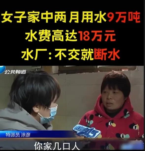女子家中二月用水9万吨,水费高达18万,水厂表示:不交钱自来水公司就停水那我们来看看究竟是什么原因呢!!! 大娘两月用水9万吨,水费高达18万。对于如此离谱的情况,工作人员却表示郭女士将水都存井里了。为此,郭女士当场怒了,直言工作人员就是在胡编乱造,因为这做法不简直就是挖坑自己跳下去吗?其次就是自己家里装了回水阀。