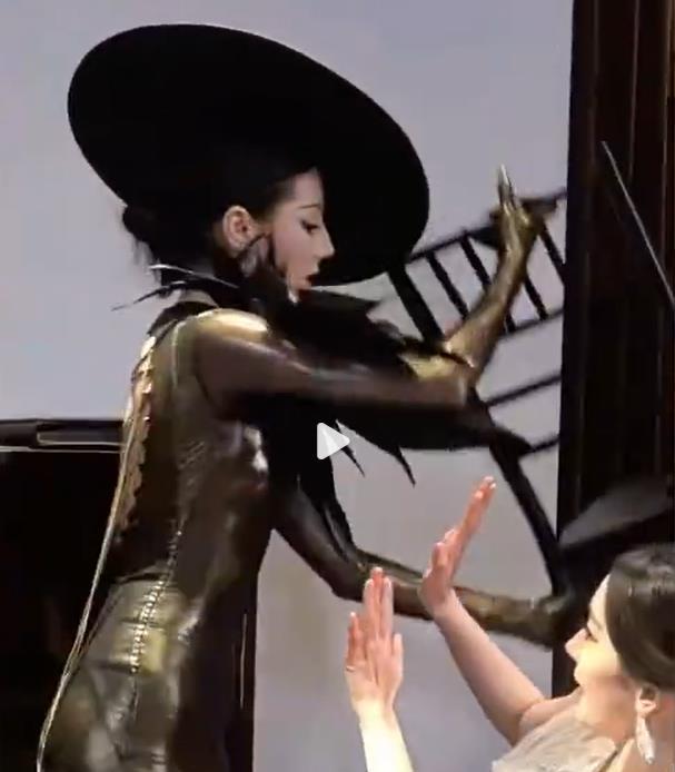 #热巴你是要砸死你姐吗# 迪丽热巴和杨幂参加W年度光影盛典。在盛典后台迪丽热巴身着高定礼服,主动俯身搬起后台的木质折叠椅整理场地。杨幂双手护住脑袋,随口而出:“热巴你是要砸死你姐吗?”[笑哭]