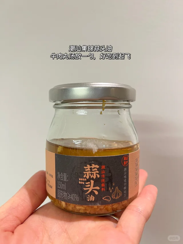 4️⃣潮汕集锦蒜头油 潮汕地区的灵魂调料,很百搭,清汤面或者牛肉丸青菜汤里放一点,馋哭隔壁家小孩!