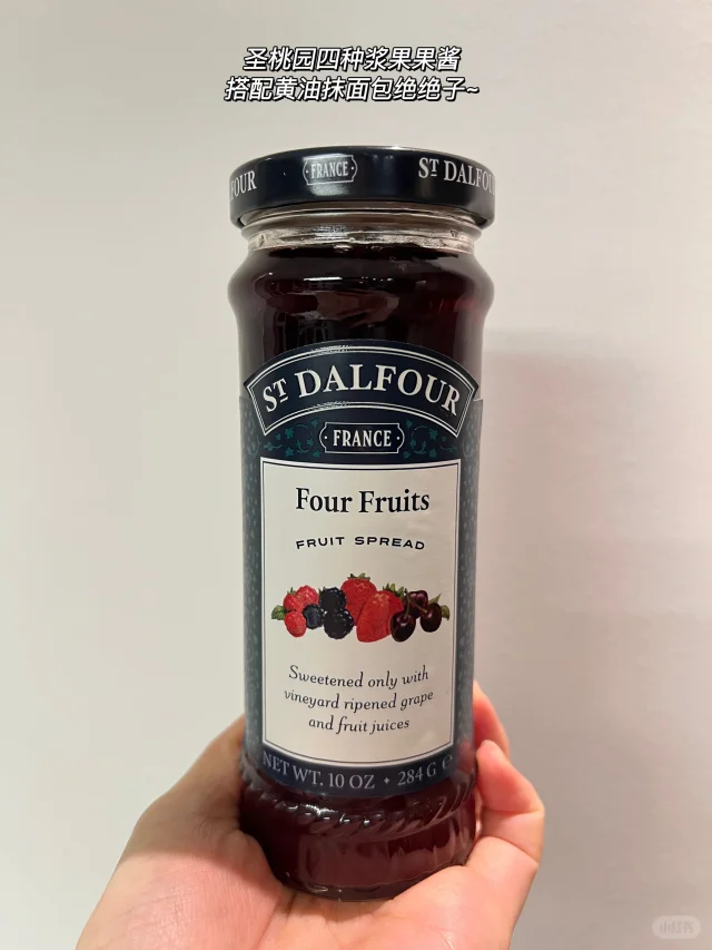 8️⃣圣桃园四种浆果果酱 100%鲜果制成,0添加蔗糖,味道酸甜适中,口感非常接近自己熬的果酱。搭配黄油一起抹面包,咬一口幸福感超强!