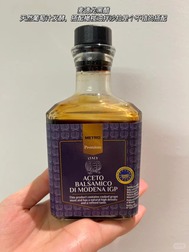 7️⃣麦德龙黑醋 天然葡萄汁发酵,味道酸甜可口,质地浓稠,搭配橄榄油代替脂肪含量高的沙拉酱拌沙拉是个不错的选择。