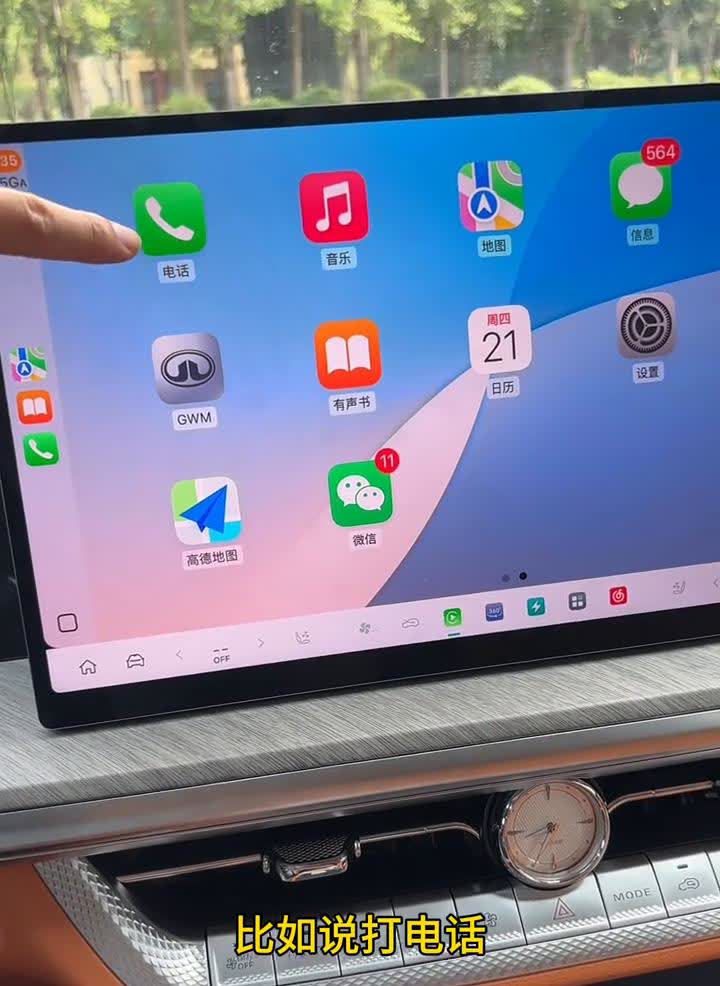全新坦克500更新了一个非常贴心的小功能。原来坦克汽车车机互联只能够连接国产手机,因为它具备hicare功能。但是这次全新500更新了苹果的Carplay,也意味着苹果的手机也能和坦克车实现了互联。 现在已经连上了,手机上的软件都投在了屏幕上,包括接打电话、微信、钉钉,包括一些软件。所以办起工来就非常方便,比如打电话或者把钉钉的会议投在大屏上,包括一些微信的通话,所以就会非常的方便。 有没有喜欢这个功能的可以点赞收藏一下。