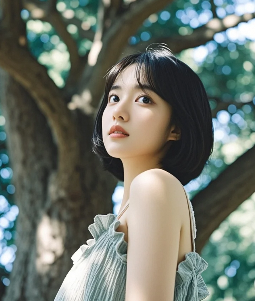 她靠在栏杆上看海,美得像一首未唱完的歌