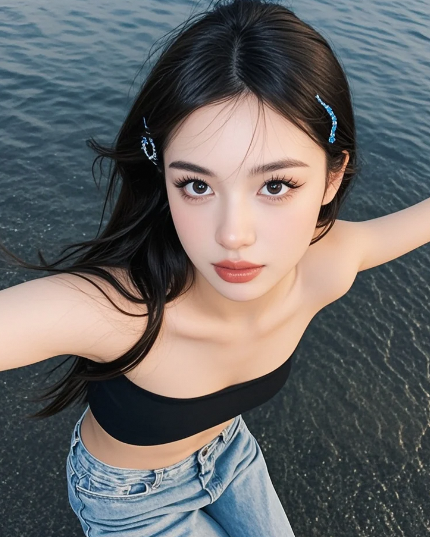 水波荡漾间,她如幻影般浮现,似梦非梦。