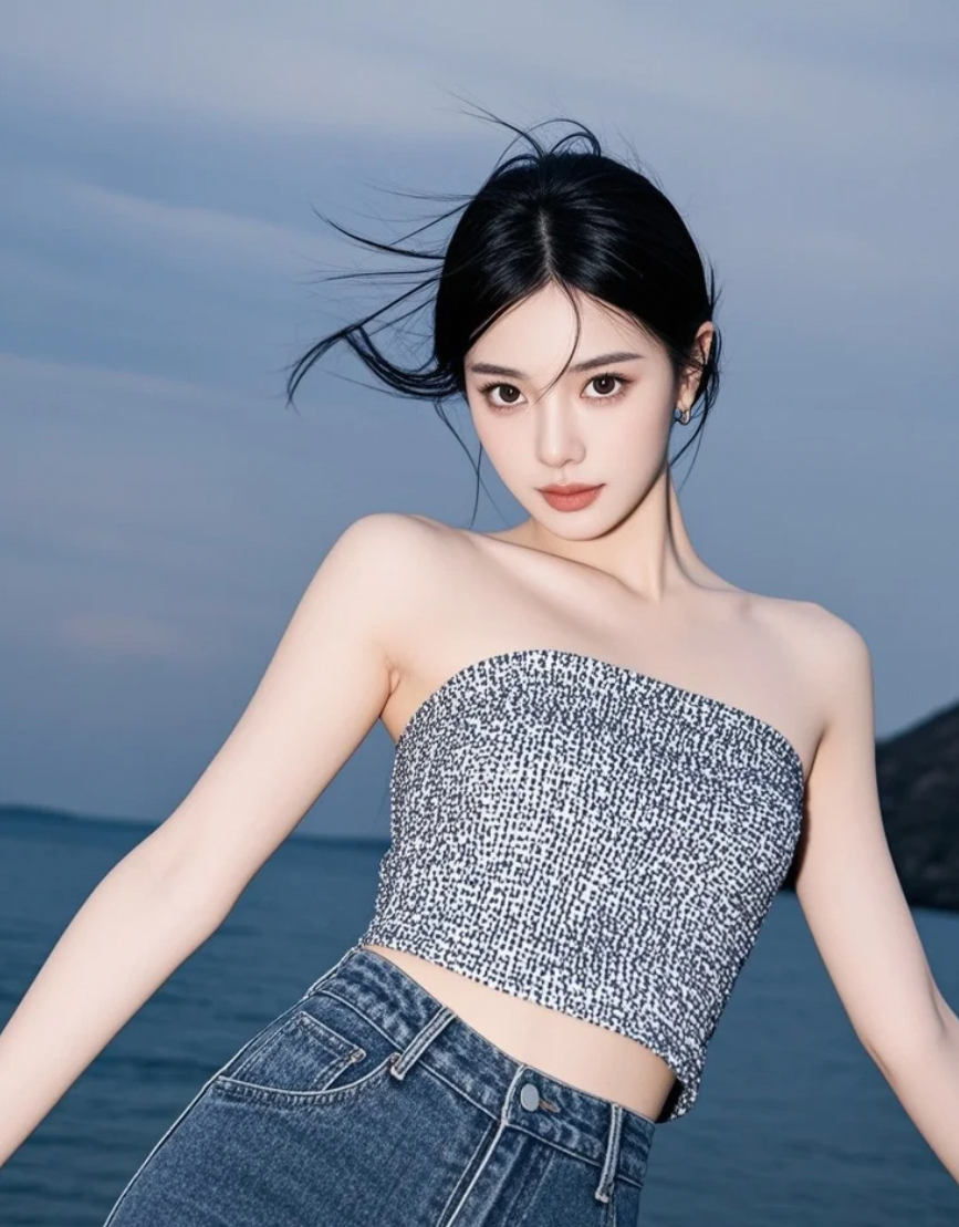 她靠在栏杆上看海,美得像一首未唱完的歌