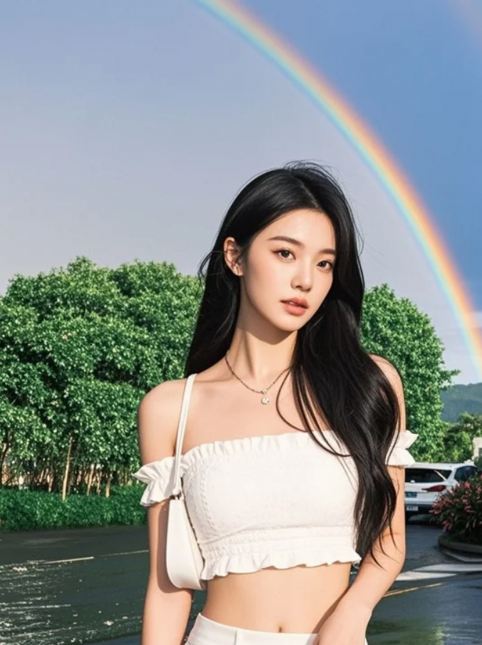 雨是天空的泪,虹是大地的吻,而她,是此刻唯一的光。
