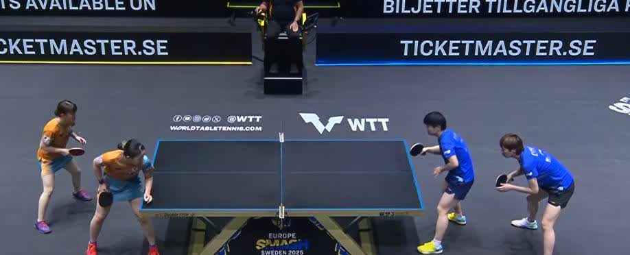 孙颖莎和王曼昱3:2获得女双冠军 俗话说, 要技术,有技术, 要配合,还有技术。 说的就是海产姐妹。 第一局 海产姐妹11:9输掉了 有些可惜。 第二局 海产组合认真了, 3:0开局 10:7拿到局点, 结果让人家追上了。 好在, 两人有技术。 13:11扳回一局 第三局 海产姐妹10:6拿到局点 11:8拿下 第四局 海产姐妹11:13输了 决胜局 海产姐妹 11:2