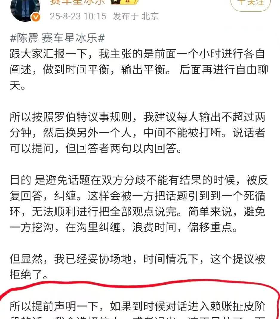 陈震和赛车星冰乐要辩论了。这跟那个金剪刀一样,跟陈震不是一个层次。 虽然陈