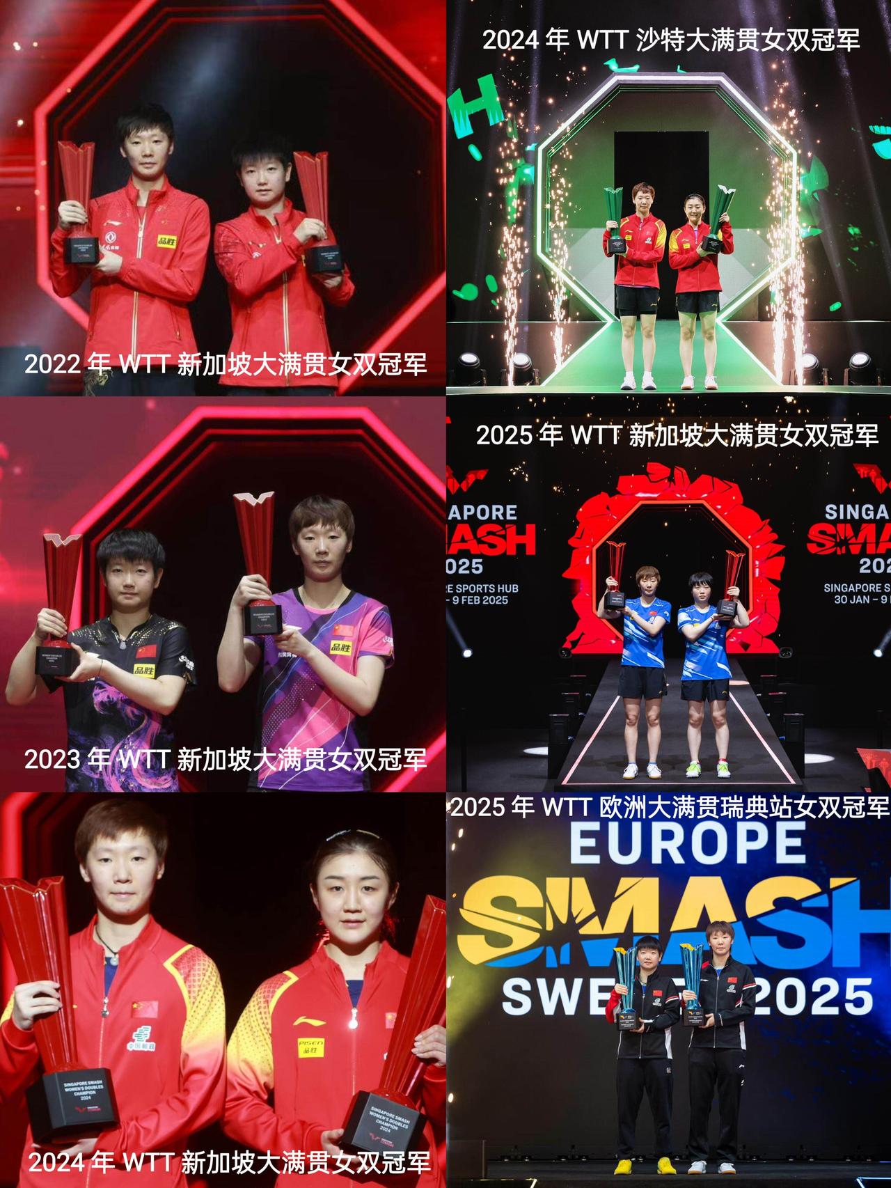 曼昱已经是六座大山的女双冠军,和谁都可以搭档的好,这就是实力,王曼昱太强了! 这次的女双冠军太有感觉了,高级姐妹花,这次必须大大的赞,和莎莎发展成好姐妹,海产姐妹比赛质量高,特别好的一幕! 真的超级棒,特别好的莎莎和曼昱,都是大格局,祝福孙颖莎、王曼昱一路高飞!