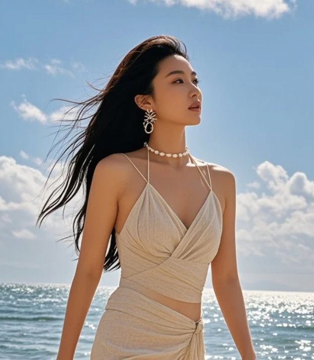 长发+海景,这氛围感给几分?
