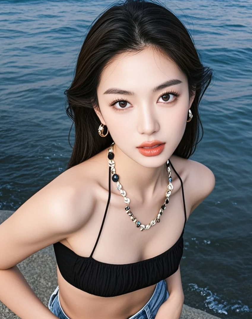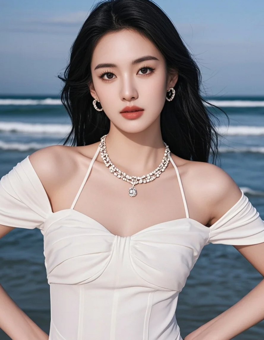 长发+海景,这氛围感给几分?