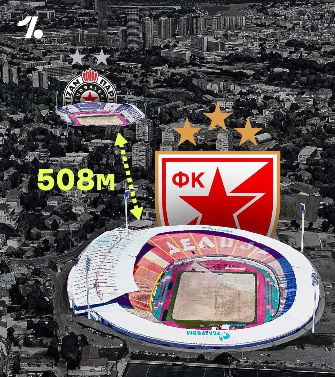 足球俱乐部同城德比“死敌”的距离: 但最炸裂的德比非贝尔格莱德德比:贝尔格莱德红