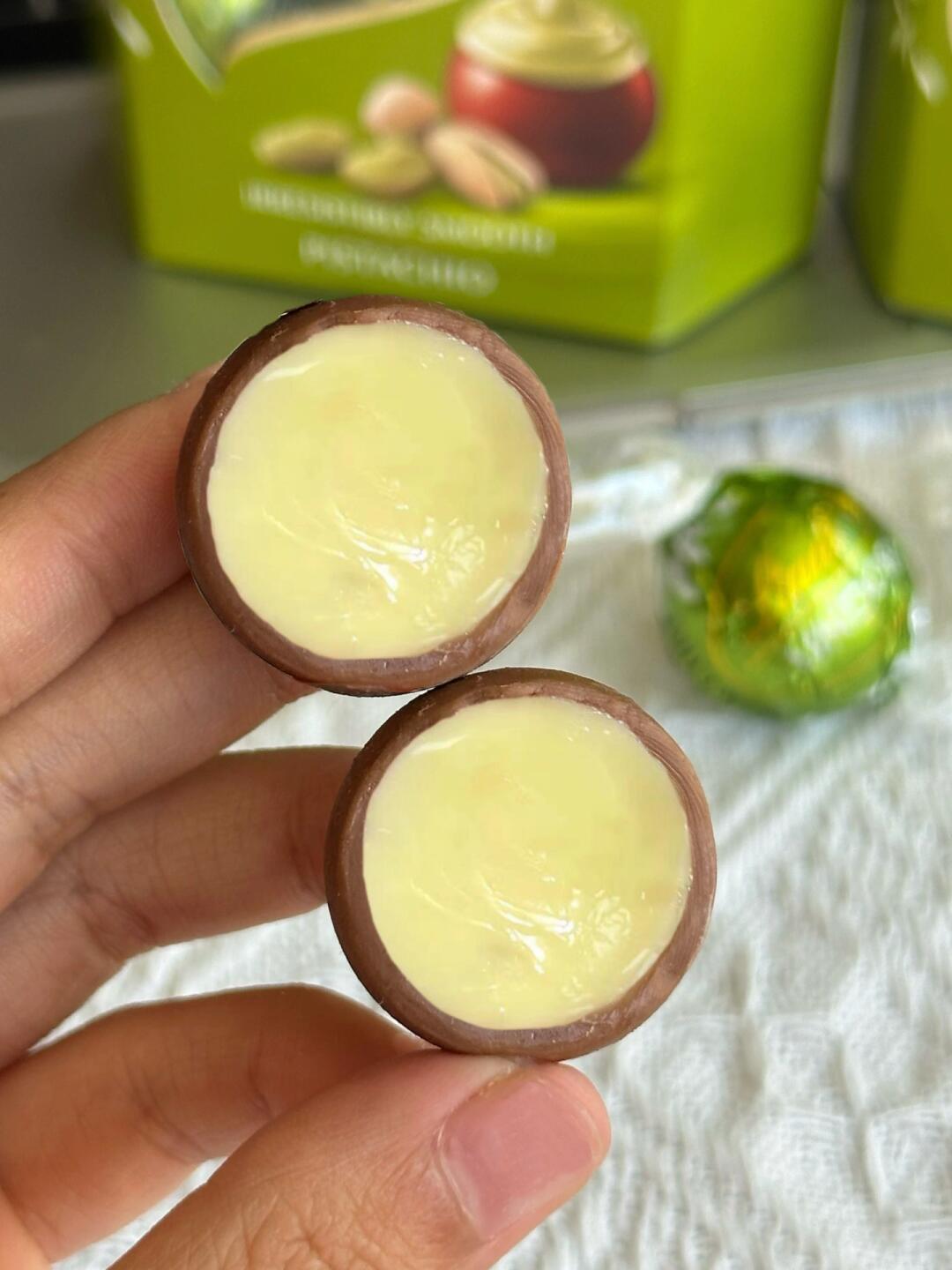 咬下去可以感受到那个幼滑的开心果巧克力软心