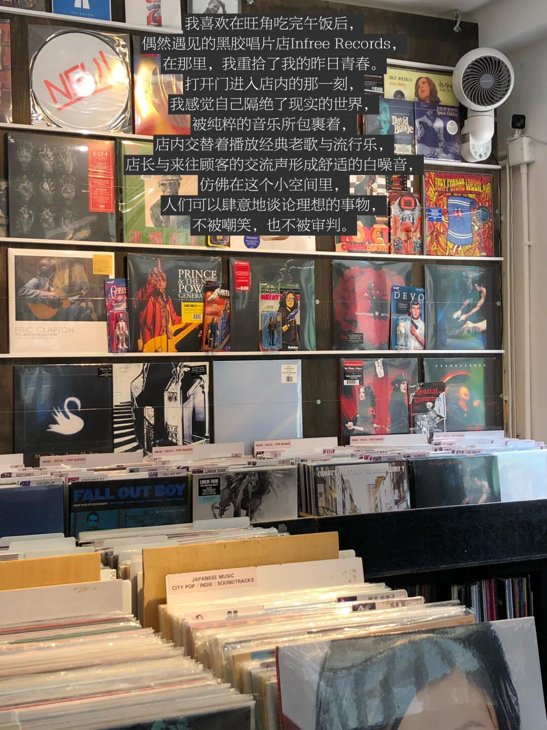我喜欢在旺角吃完午饭后,偶然遇见的黑胶唱片店Infree Records,在那里,我重拾了我的昨日青春。