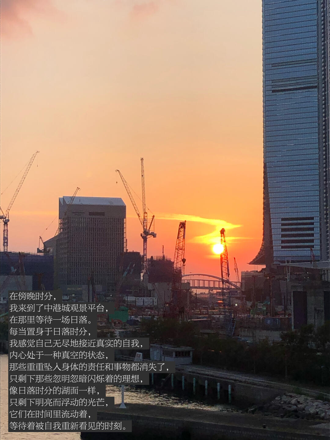 在傍晚时分,我来到了中港城观景平台,在那里等待一场日落。