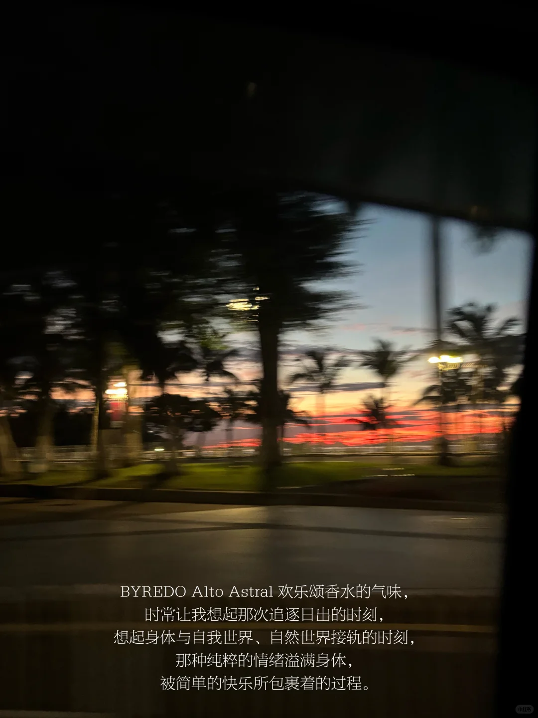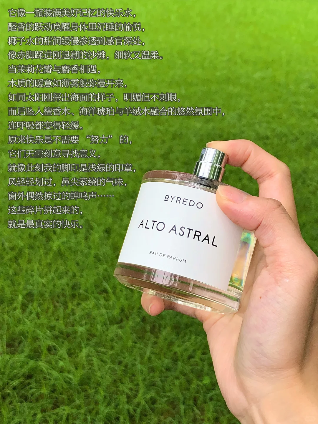 BYREDO Alto Astral 欢乐颂香水的气味时常让我想起那次追逐日出的时刻,想起身体与自我世界、自然世界接轨的时刻,那种纯粹的情绪溢满身体,被简单的快乐所包裹着的过程。