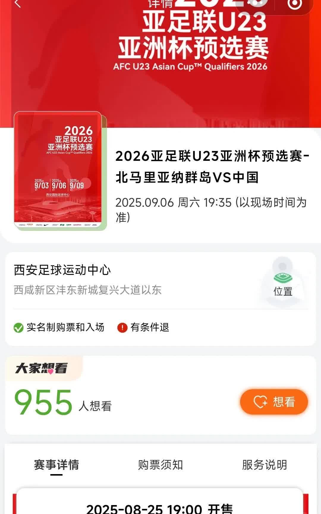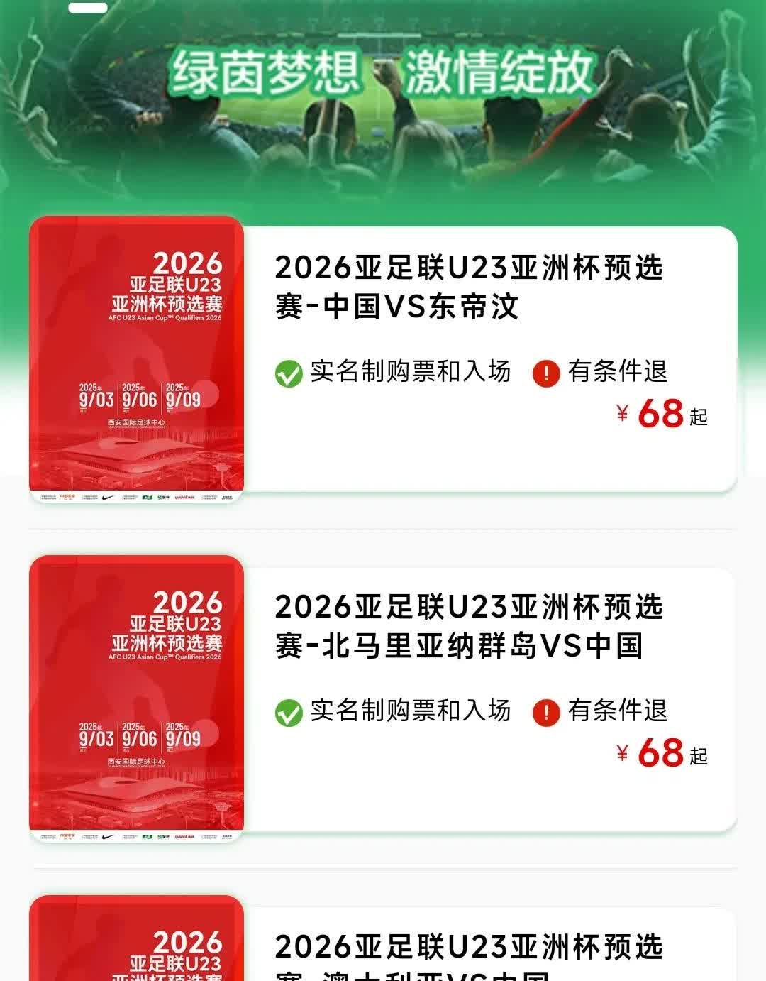 8月25日晚7点,西安国际足球中心26年亚足杯预选赛票正式开售!