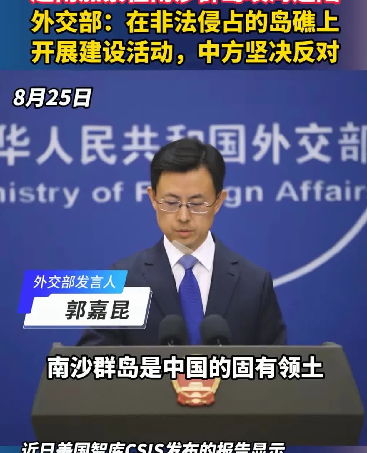 新加坡联合早报昨天(8月24日)报道:“美国智库指出,越南在主权受争议的南中国海显著扩大填海造陆工程,于斯普拉特利群岛新造陆地面积快赶上甚至超越中国。 越南一边享受着中国改革开放的红利,一边在我国南沙群岛制造麻烦。美国实施印太战略,越南认为有机可乘,今年以来在我国南海南沙群岛填海造地,外交部发言人郭嘉坤今天发布严正声明,南沙群岛是中国的固有领土,越方在非法占有的岛礁上开展建设活动,中方坚决反对,将采取必要反制措施。