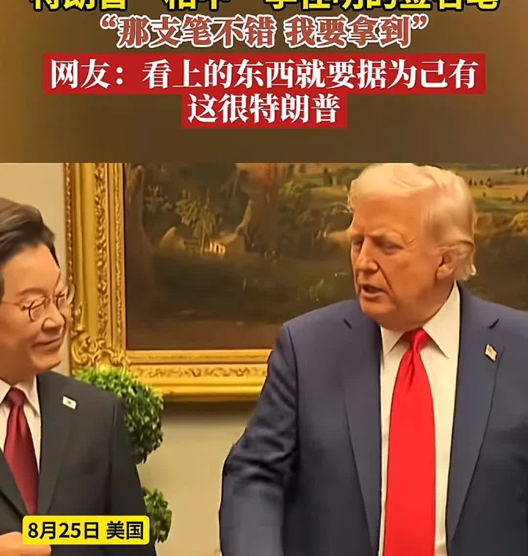 特朗普与访美的李在明会晤,签字的时候特朗普亲自给李在明搬椅子,这么殷勤果然没有好事,当李在明签完字后,把李在明的钢笔要了! 特朗普表面要的是钢笔,实际上就是服从性测试,这从李在明到达白宫一刻就开始。 中间两人交谈的时候特朗普想要获得驻韩美军的土地,邀请他一起访华,种种行为就是看他听不听话。