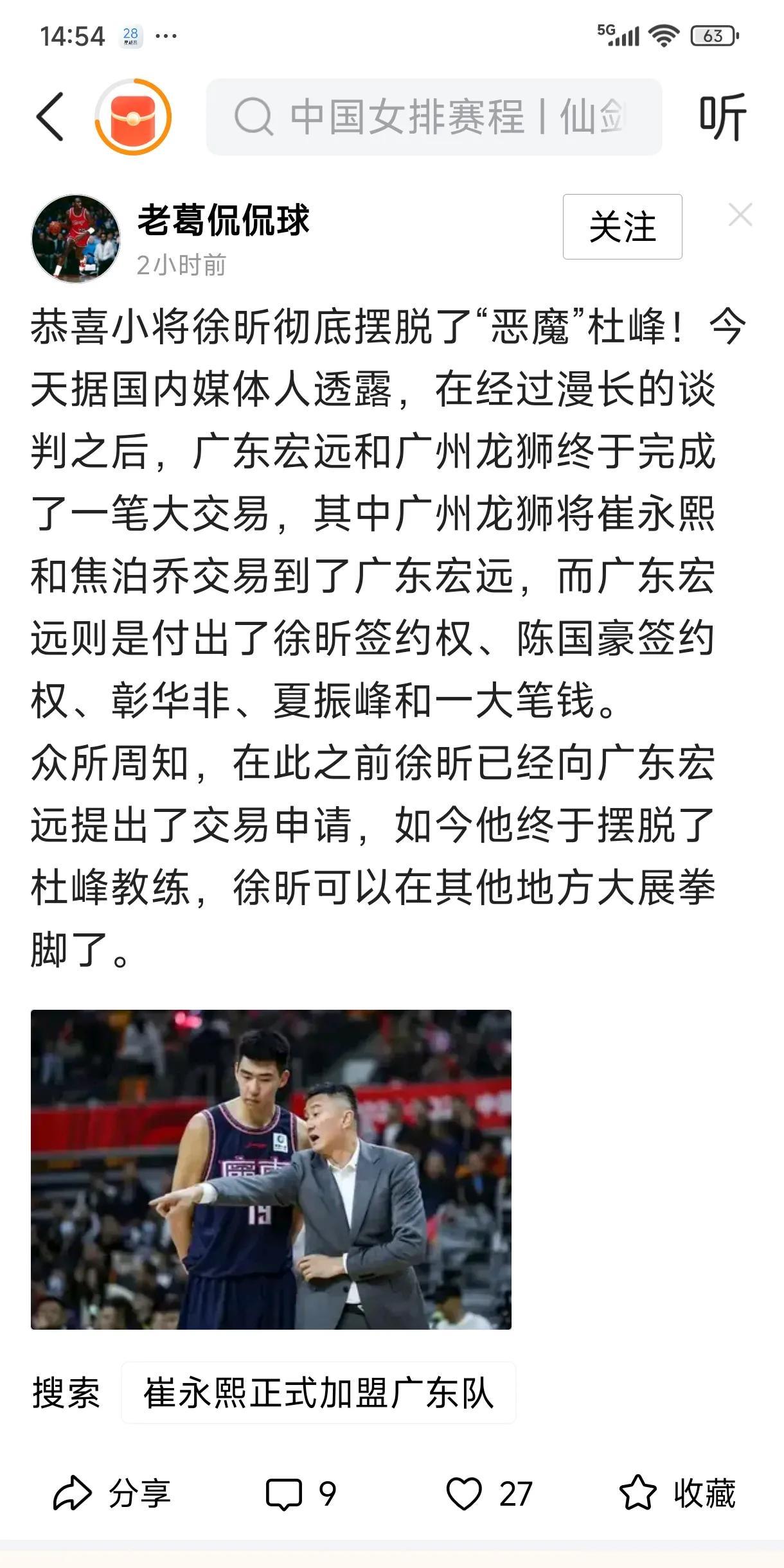 据网上多家消息,徐昕被打包送到广州龙狮俱乐部,一起送走的还有刚从北控交易来还没来