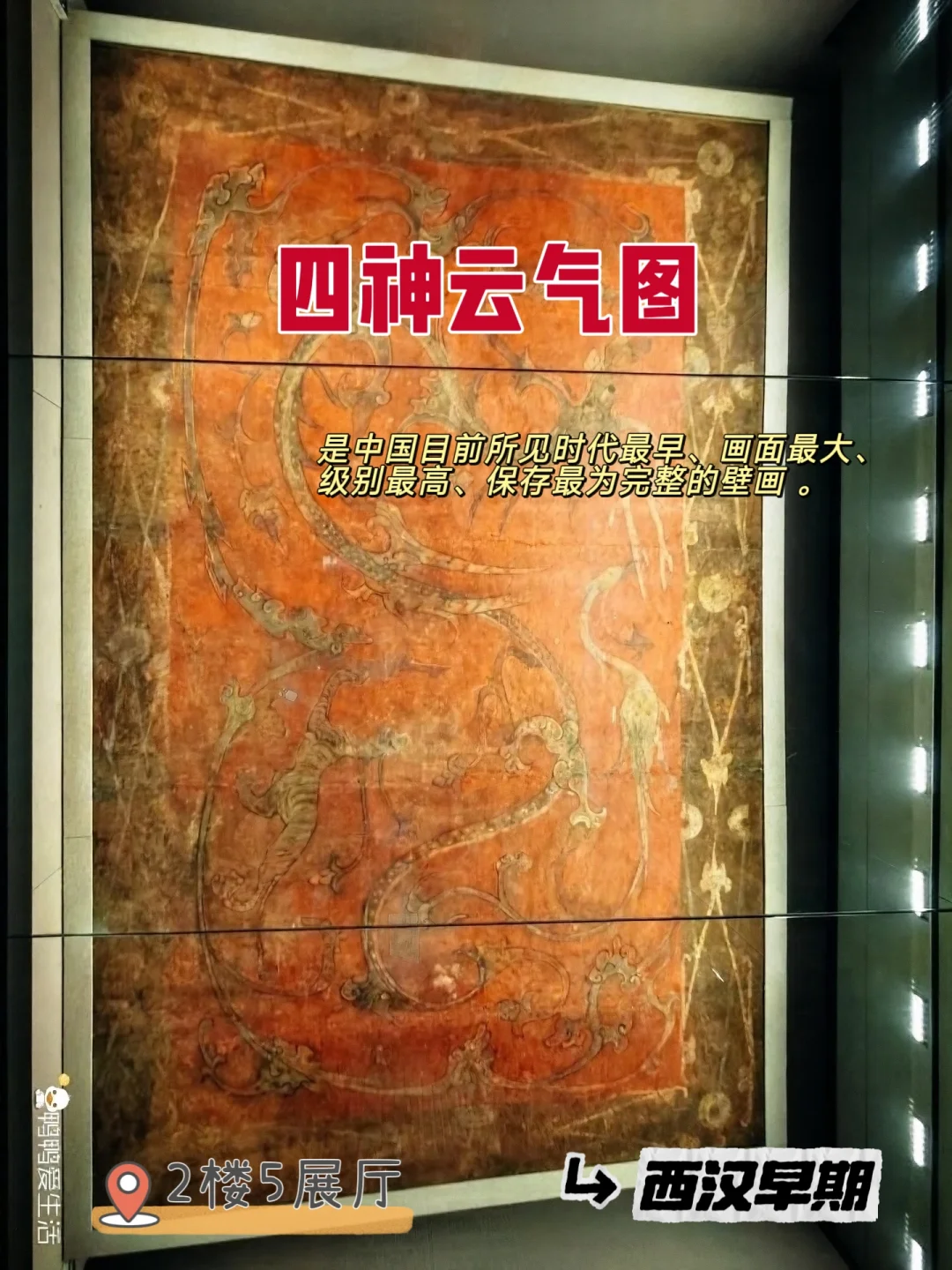 6️⃣四神云气图:📍2楼5展厅,是中国目前所见时代最早、画面最大、级别最高、保存最为完整的壁画
