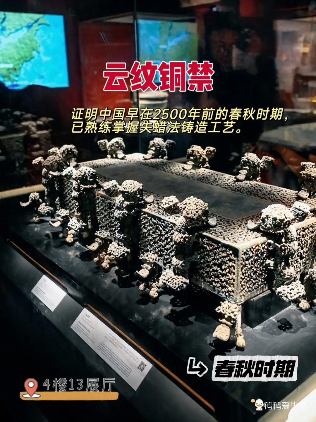 9️⃣云纹铜禁:📍4楼13展厅,证明中国早在2500年前的春秋时期,已熟练掌握失蜡法铸造工艺。