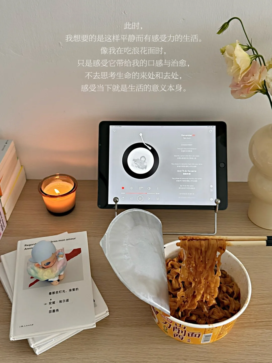 此时,我想要的是这样平静而有感受力的生活。像我在吃浪花面时,只是感受它带给我的口感与治愈,不去思考生命的来处和去处,感受当下就是生活的意义本身。