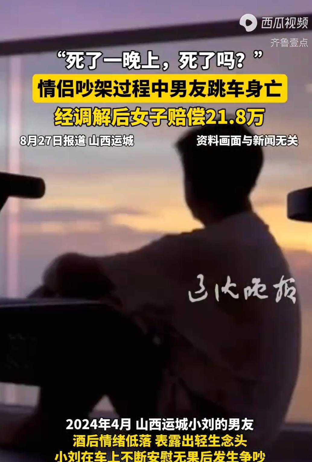我说过很多遍了。我最怕就是碰到这种人:遇到点事就要死要活的。还有这个女的好冤啊,从运城打车过去,很显然目的就是劝他不要死,拯救他的生命,都劝了很久了,都没有结果,她也不知道这样纠缠还要多久,所以疲惫无奈地唠叨了一句“死了一晚上,死了吗”?这是任何人的一个正常反应……就这样还要付几十万……所以呀,找男朋友也好,找女朋友也好,甚至交朋友也好,都要看清对方啊……不要找那些人渣和魔鬼。