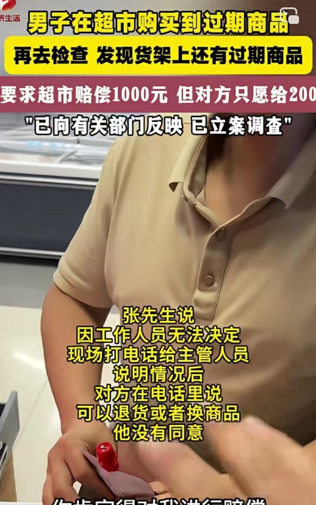 湖北廊坊,男子买了一袋甜面酱,到家后看到已经过期了一个多月,男子返回店里仔细查看,发现货架上还有好多过期产品。男子向店员反映了这个情况,并要求按照《食品安全法》赔偿1000元。可店里却说:你吃坏了我可以赔你医疗费,你又没吃,我顶多赔你200块钱! 据AHTV第一时间报道,8月30日,张先生去某店里买了一袋甜面酱准备回家做饭,可等他回家后,却无意中发现甜面酱有问题。 张先生仔细一看,甜面酱生产日期是去年的7月22日,保质期是一年,截止当天已经过期一个多月了。 张先生懂一些法律,他认为吃进肚子里的东西一定要安全,过期一个多月的东西还在继续卖,这不是对消费者的不负责吗?于是,张先生返回店里准备找店家说道说道。 回到店里后,张先生想看看该店还有没有过期的东西,于是他装作普通顾客,去调味品货架上翻找,结果竟然真的又让他找出了好几种过期的东西。 确认自己买到过期甜面酱不是偶发性的,张先生更加坚定了维权的决心。于是,他直接找到店员,拿出自己买的甜面酱,告诉对方自己买到过期的了。 店员诧异了一下子,然后就准备拿走张先生的甜面酱,一脸毫不在意的表情,表示给张先生换一袋。 张先生立即缩手,把酱收了回来,说:“换一袋肯定不行,你肯定得对我进行赔偿。” 店员表示她做不了主,随后就给负责人打了个电话,张先生在和对方沟通的时候,对方表示,这件事确实是他们不对,给张先生退或者换都没问题。 张先生不接受,只要求赔偿,对方问他想怎么办,张先生摆出《食品安全法》,要求按照法律规定,赔偿他1000元。但是张先生也说了,他不要1000元,给他800就行。 可是对方却说不能这么算,如果说张先生买了东西吃了以后出问题了,他们可以承担医疗费,另外赔偿张先生,但是张先生买的甜面酱都没打开,更没有吃,没有对张先生造成实质性损伤,张先生要求赔偿不合理。 最后,对方又说,这家店不是他开的,他愿意个人出200块钱张先生,这件事就算了了。张先生不同意,对方告诉张先生,他要不同意,愿意找哪个部门就找哪个部门好了。 负责人称,张先生买到的过期甜面酱没有造成实质性损害,所以不用赔偿,这种说法是否有法律依据?此事从法律角度又应该如何分析? 张先生买到的甜面酱还没来得及吃就被发现过期了,在没有造成实际损失的时候,张先生能否索赔? 按照该店的逻辑,民事纠纷应该按照损害赔偿制度来赔偿,也就是说,因违反法令或约定义务造成他人损害的才赔偿,未造成他人实际损害的不赔偿。 这种说法在一般情况下是对的,但是放在食品安全问题上,就不是那么回事了。 俗话说,食品安全大于天,食品和每一个人都息息相关,安全一定要得到保障。所以有专门的法律对食品中出现的各种问题进行了仔细的划分及规定。 《食品安全法》第一百四十八条规定,生产不符合食品安全标准的食品或者经营明知是不符合食品安全标准的食品,消费者除要求赔偿损失外,还可以向生产者或者经营者要求支付价款十倍或者损失三倍的赔偿金;增加赔偿的金额不足一千元的,为一千元。 《食品安全法》对于生产、销售不符合食品安全的食品的行为做出了明确规定,即只要发现食品不能食用,都可以要求生产者或者经营者进行10倍惩罚性赔偿。 张先生虽然并没有来得及吃甜面酱,但是店家销售过期食品的行为已经违反了《食品安全法》。 换句话说,张先生索赔1000元,并非索要损害赔偿,而是法律对于经营者销售不能食用的食品进行的一种惩罚。 所以,负责人以张先生没有吃甜面酱为由拒绝赔偿,是毫无理由和根据的。 最终,张先生投诉了这家店,当地多部门均已介入调查。