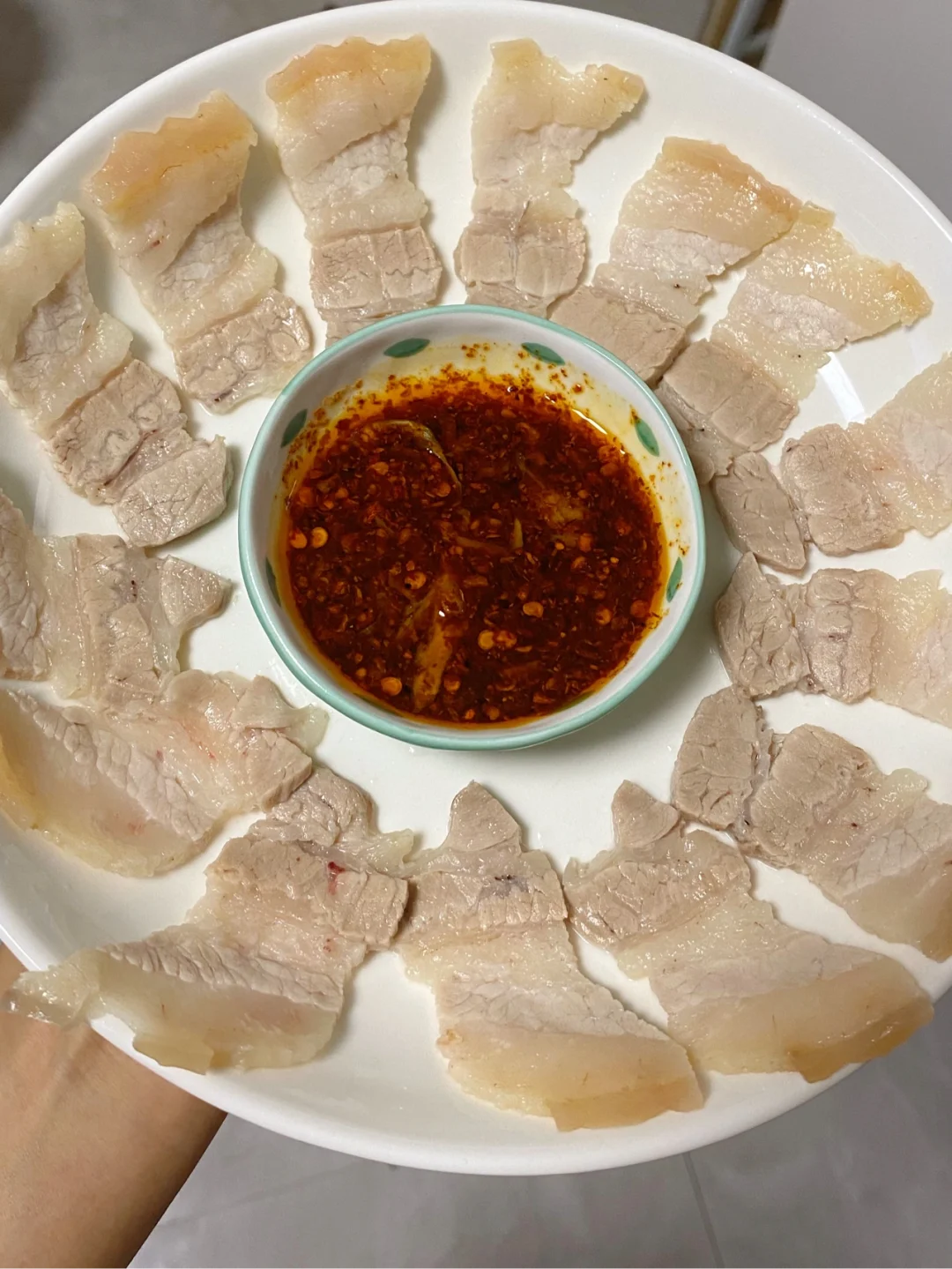 我真的超级爱吃五花肉😋 这应该是五花肉最简单的吃法了!! 简单又好吃 太太太香了! 做法真的超简单,懒人必备操作! 1⃣️冷水下锅,葱、姜、料酒去腥 2⃣️大火煮开,小火煮20分钟,捞出来放凉切片 3⃣️调个蘸水,蒜泥➕香油➕辣椒油➕生抽➕醋➕盐 完成✅开吃!! 再懒也要试试呜呜呜呜 真的绝绝子!!
