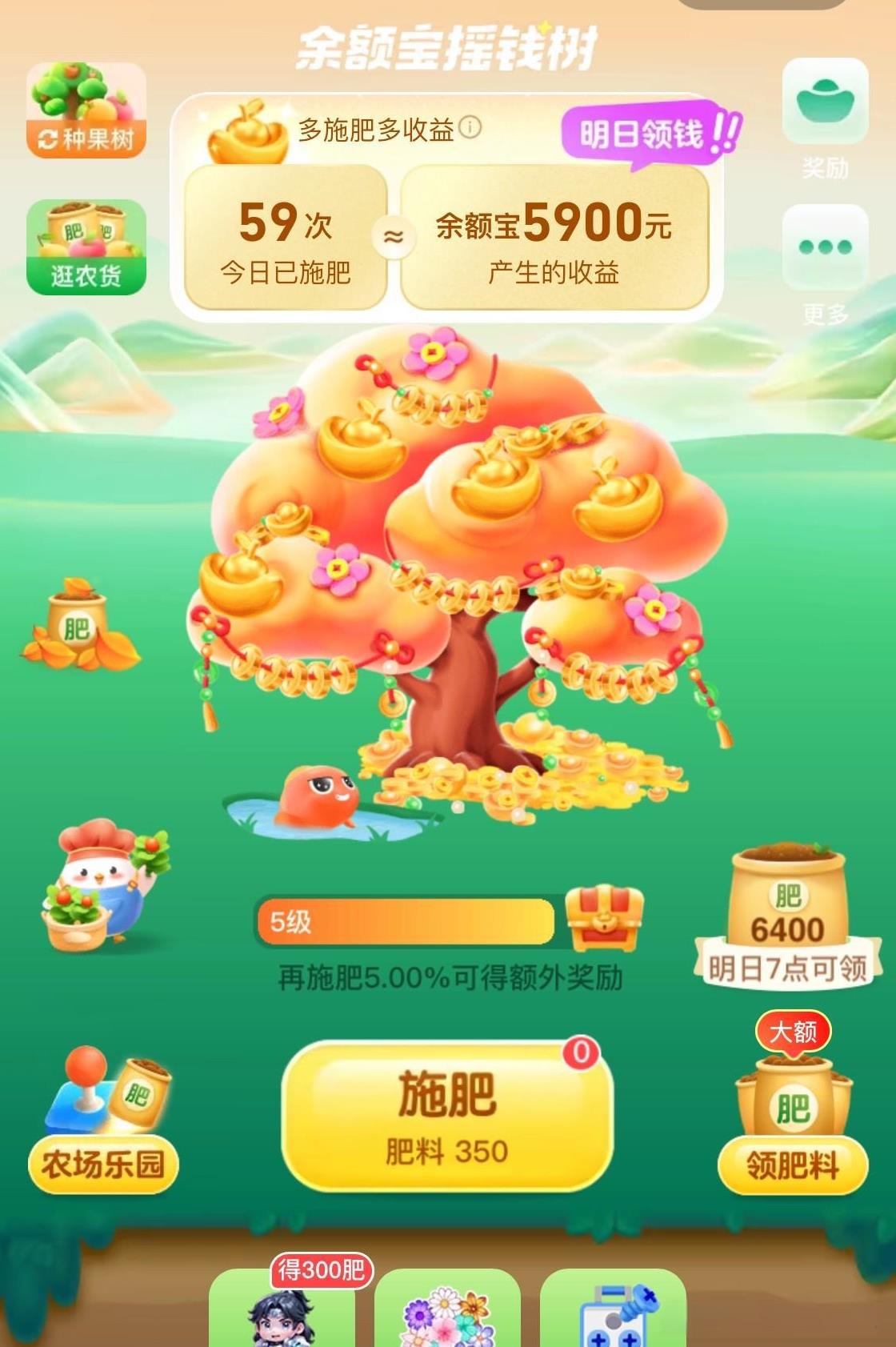 支付宝“芭芭农场”的发财树,怎样才能结出更多的金元宝呢? “多施肥,勤攒肥”这个朴素的道理,我们种发财树的小伙伴们心里最清楚不过了! 今天惊喜的发现,连续签到7天,系统会奖励一定数目的肥料。 还有,淘宝和支付宝的种树活动,是互通的。 想要给支付宝“芭芭农场”这棵发财树多施肥,淘宝的那棵树也可以先让路。 不过,这种选择全凭自己来权衡利弊而做出决定。 今天我的支付宝“芭芭农场”这棵发财树,一共施肥59次,这是种树以来施肥最多的一次! 能够有这么好的成绩,就是把给淘宝那棵树施的肥,给借过来了! 其实,就算施肥59次,明天的发财树收益不就是几毛钱。但过程带来的乐趣,是值得我们种树人享受的! #晒图笔记大赛#