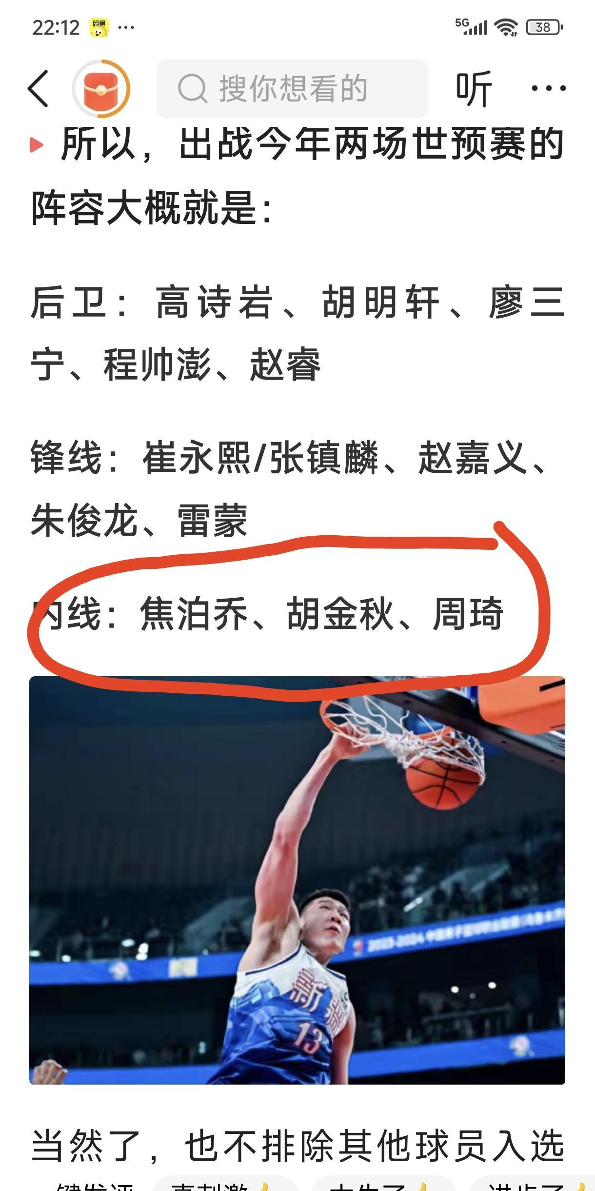 就在今天9月4日,深蓝体育(北京)有限公司公布了中国男篮世预赛的比赛时间和地点,有热心的球迷预测了中国男篮的球员名单,周琦入选,理由很简单,杨瀚森回不来,余嘉豪大概率也是回不来,内线缺人,的确是,但是我有一个要求,如果周琦不改变打球的态度,宁可不要,他懒懒散散、打球没有血性的消极态度,对球队反而会造成伤害,影响球队斗志和战斗力,目前亚洲杯的这支中国男篮是最具战斗、最有血性、最有拼搏精神的团队,不容任何人破坏,对此事,各位有什么看法?欢迎评论区里见!