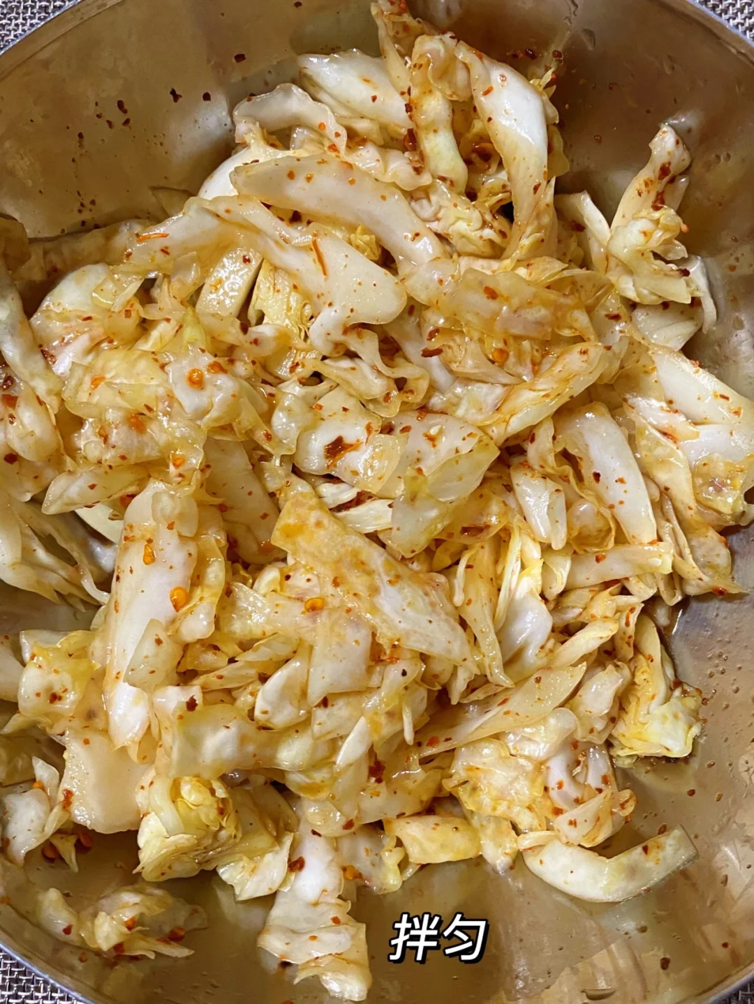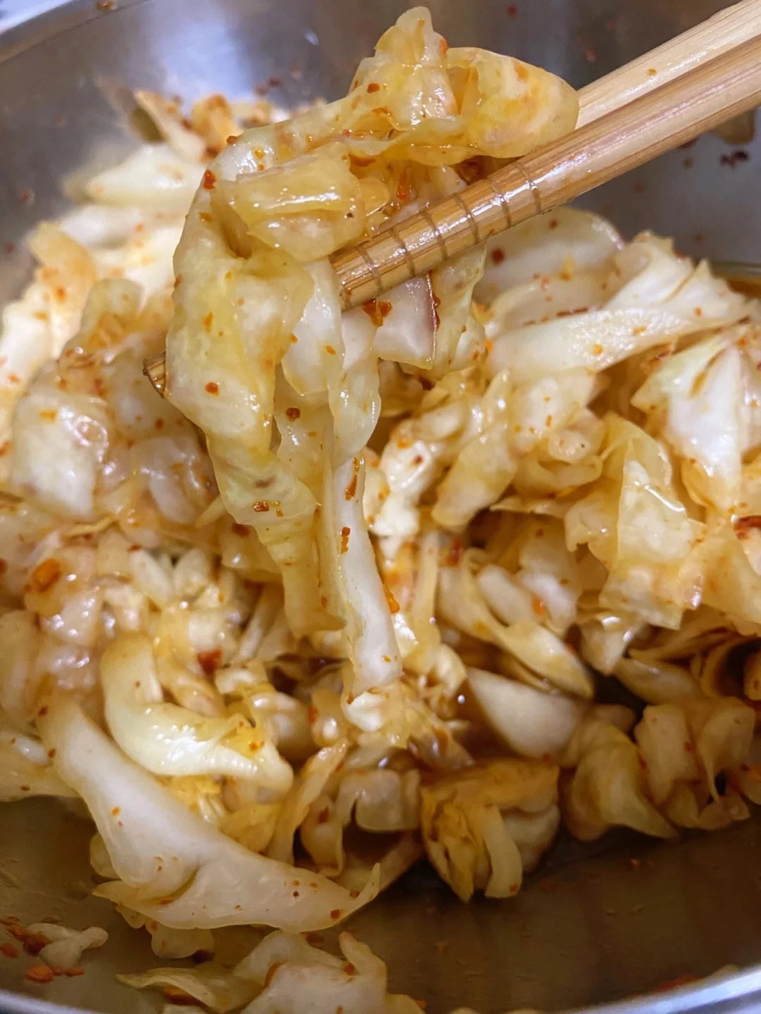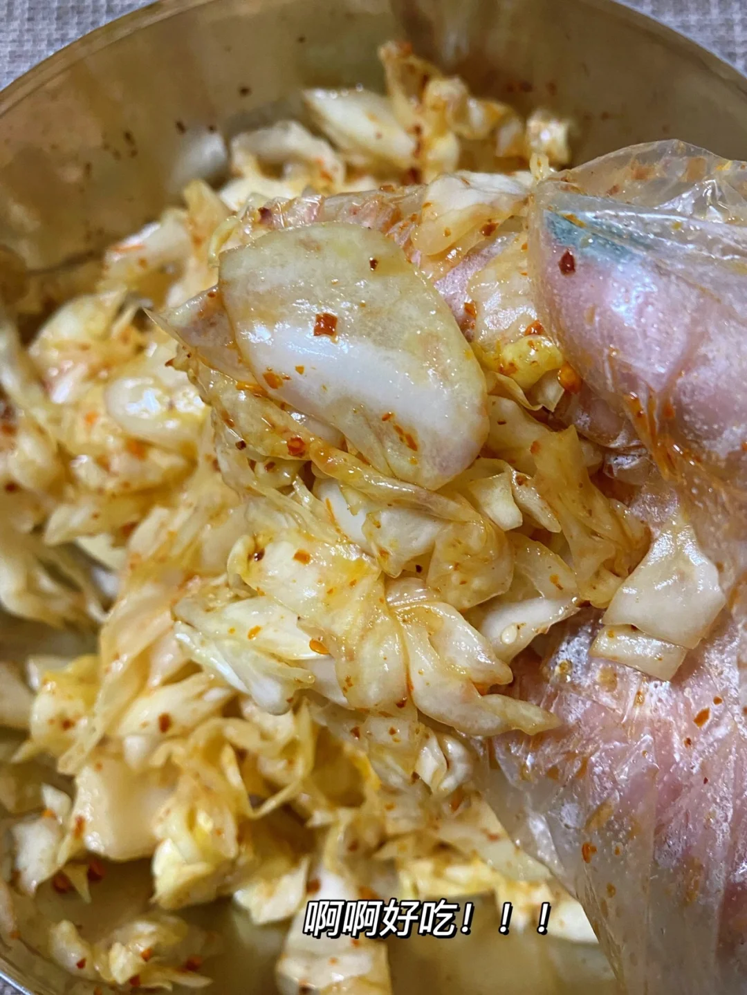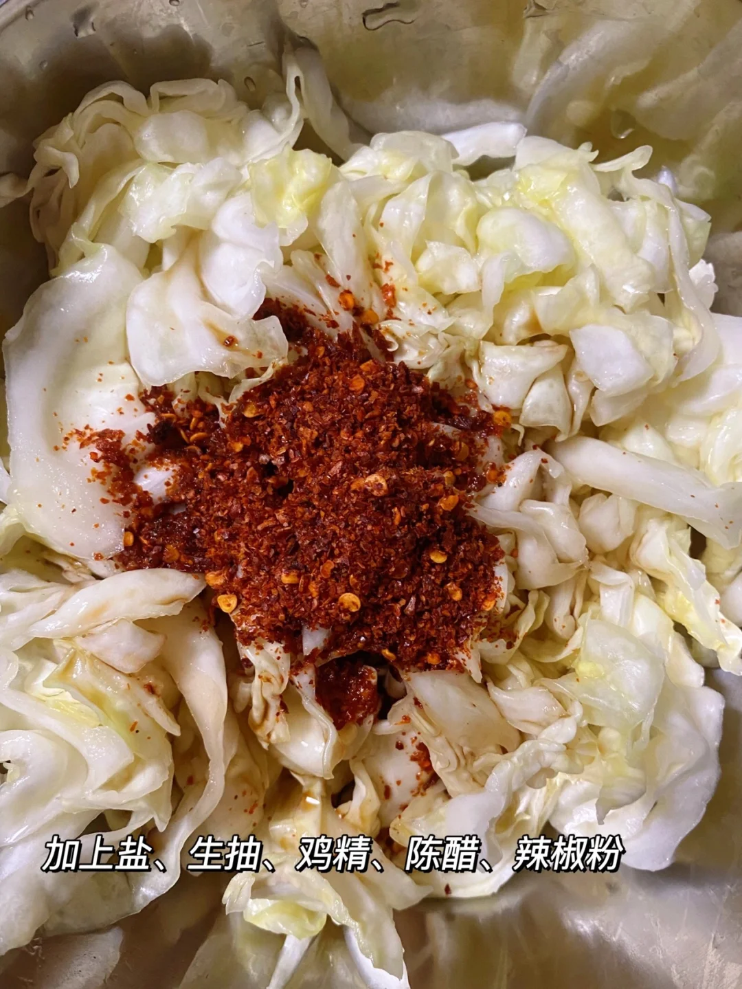 就是烧烤店那个味儿!! 太好吃了吧!!! 做法好简单的 1⃣️包菜切好,多加点盐抓拌均匀腌制1个小时 2⃣️用清水多洗几次,最后沥干水分 3⃣️加盐、鸡精、生抽、陈醋、辣椒粉拌匀 完成✅ 哇!真的太好吃啦!!! 超级脆!!! 我觉得冰箱里冷藏一晚再拿出来吃更入味!!