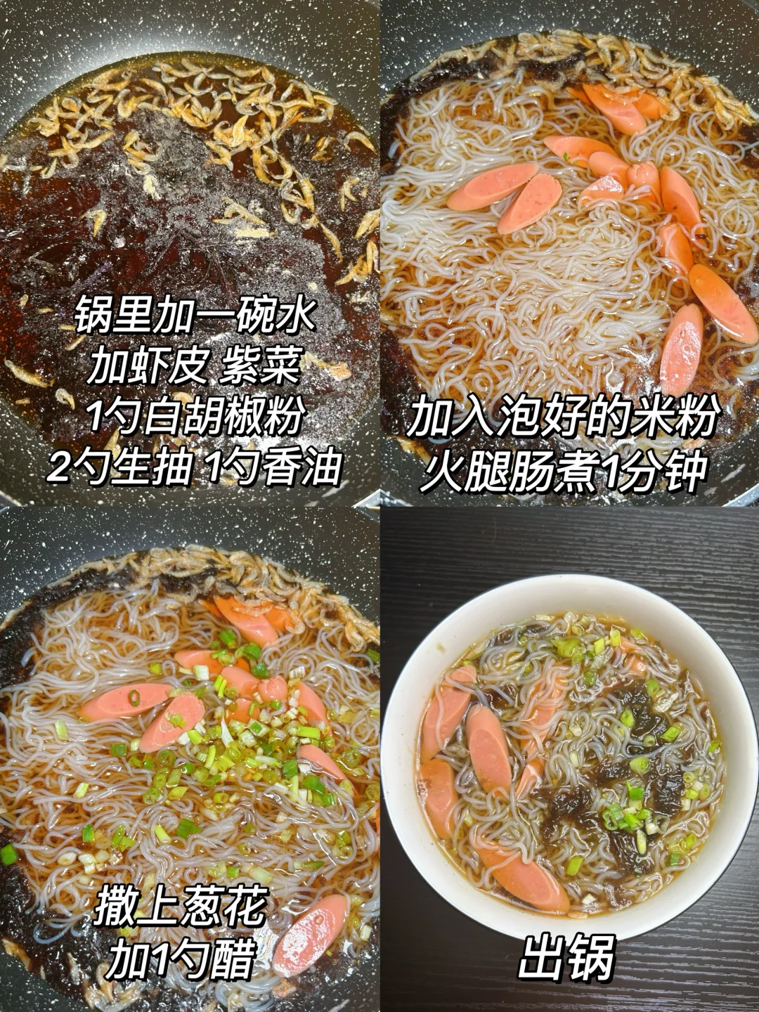 今天分享紫菜火腿肠米粉 简单又好吃!! 当早饭晚饭都可以 汤底也很好喝 姐妹们快去试试吧
