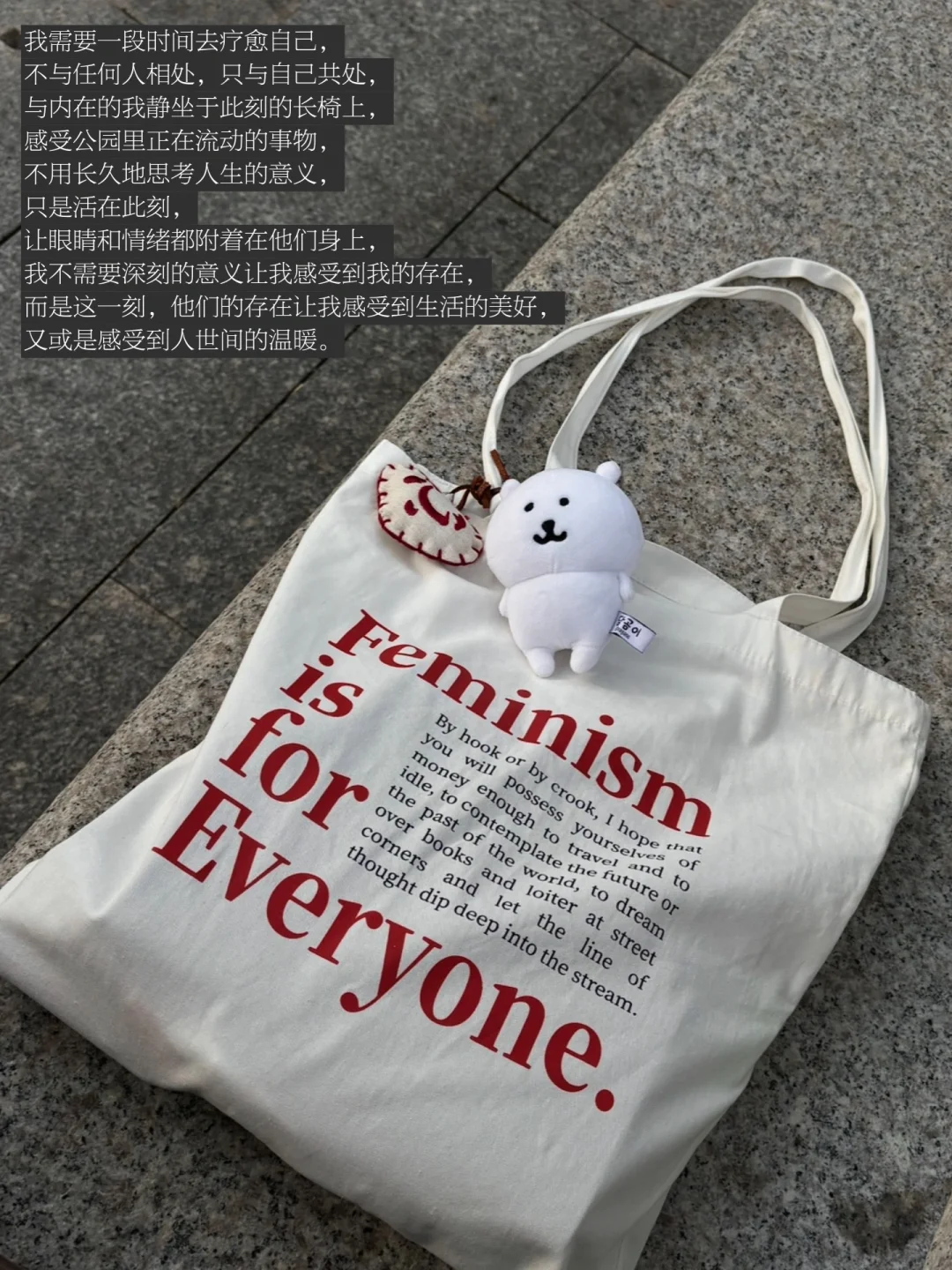 我需要一段时间去疗愈自己,不与任何人相处,只与自己共处,与内在的我静坐于此刻的长椅上,感受公园里正在流动的事物,不用长久地思考人生的意义,只是活在此刻,让眼睛和情绪都附着在他们身上,我不需要深刻的意义让我感受到我的存在,而是这一刻,他们的存在让我感受到生活的美好,又或是感受到人世间的温暖。