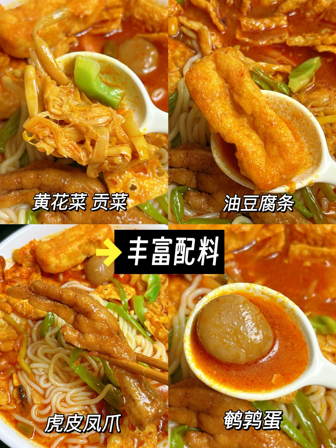 汤底是用螺蛳、猪骨、鸡架等慢慢熬制的,特别鲜美,食材都吸满汤汁,嗦起来超香!