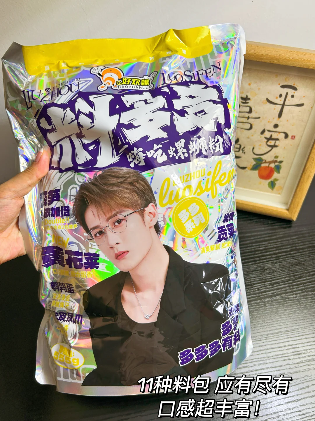 我用的是好欢螺联名檀健次出的新品料多多嗨吃螺蛳粉,11种配料包,口感特别丰富!双倍酸笋,正宗柳州味!多多zui爱的黄花菜我也爱,一口下去都是料,太爽啦!!