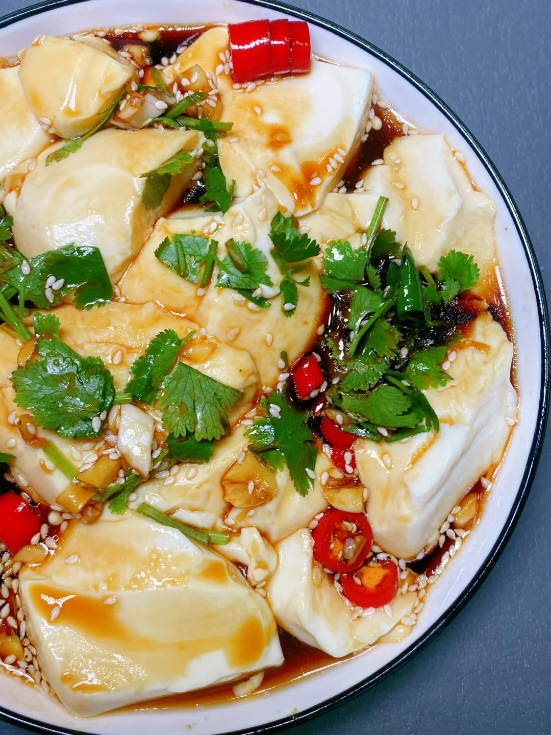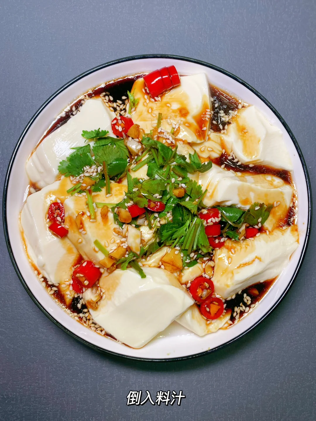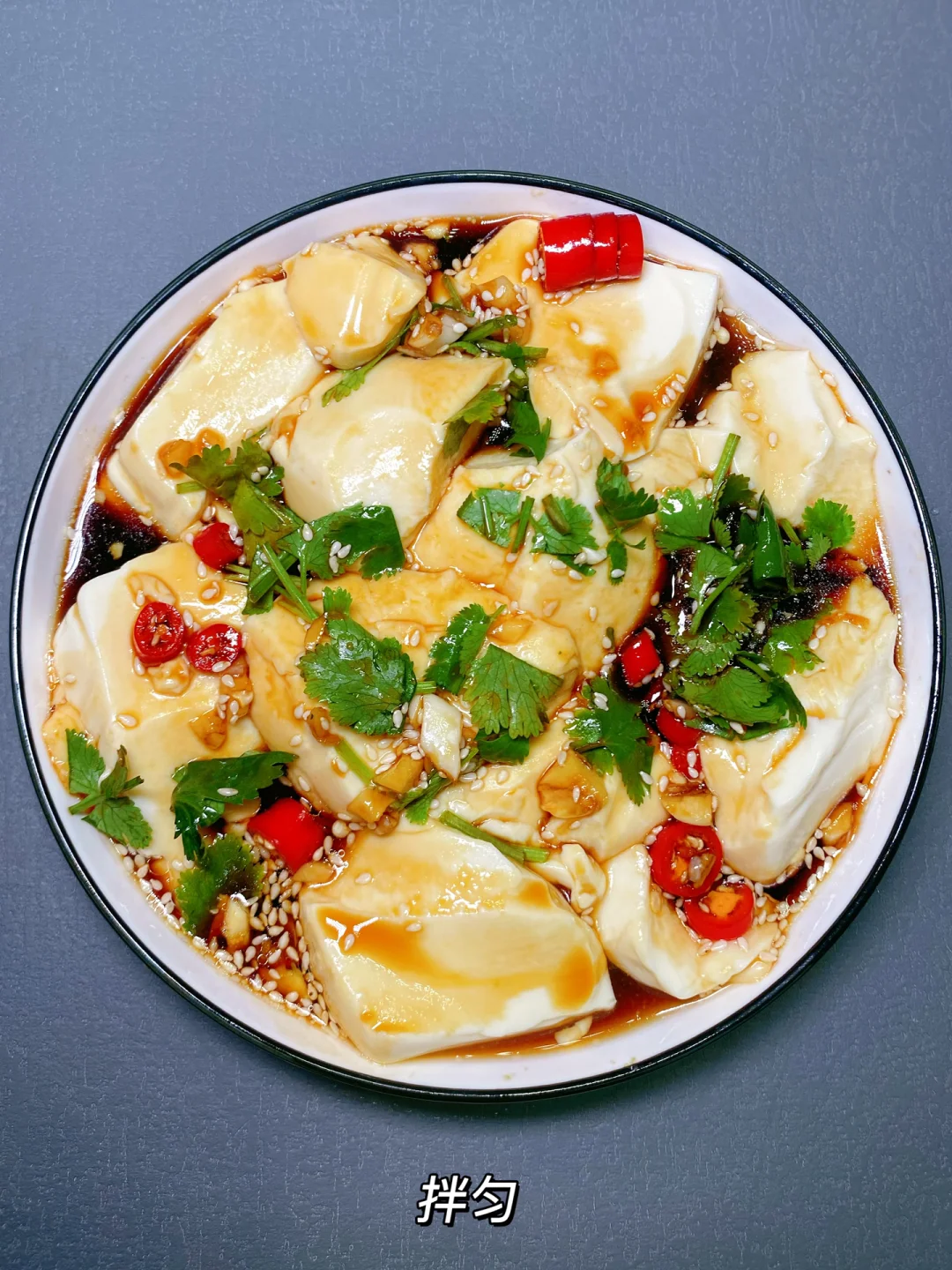 内脂豆腐这么做 太好吃了吧! 1⃣️内脂豆腐上锅蒸5分钟,用勺子挖出放入盘子里 2⃣️调个料汁,料汁比例:小米辣、1勺蚝油、1勺生抽、1勺香醋、白芝麻、1勺香油 3⃣️豆腐上撒上香菜,倒入料汁拌匀 完成✅ 太香啦!! 清爽的感觉
