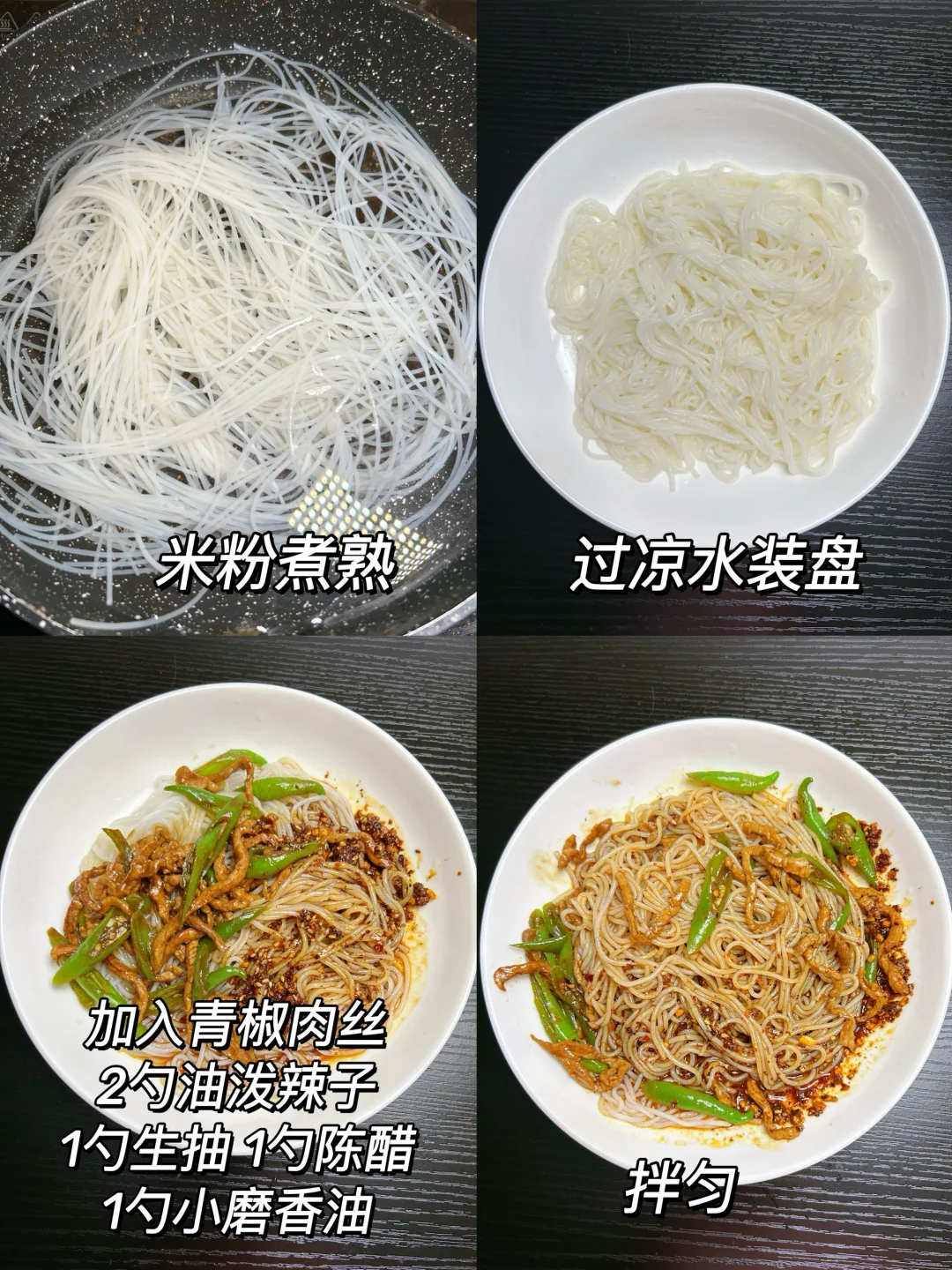 今天分享青椒肉丝拌米粉 好吃又简单!! 太香啦! 姐妹们可以去试试哇!! 做法写在图上啦