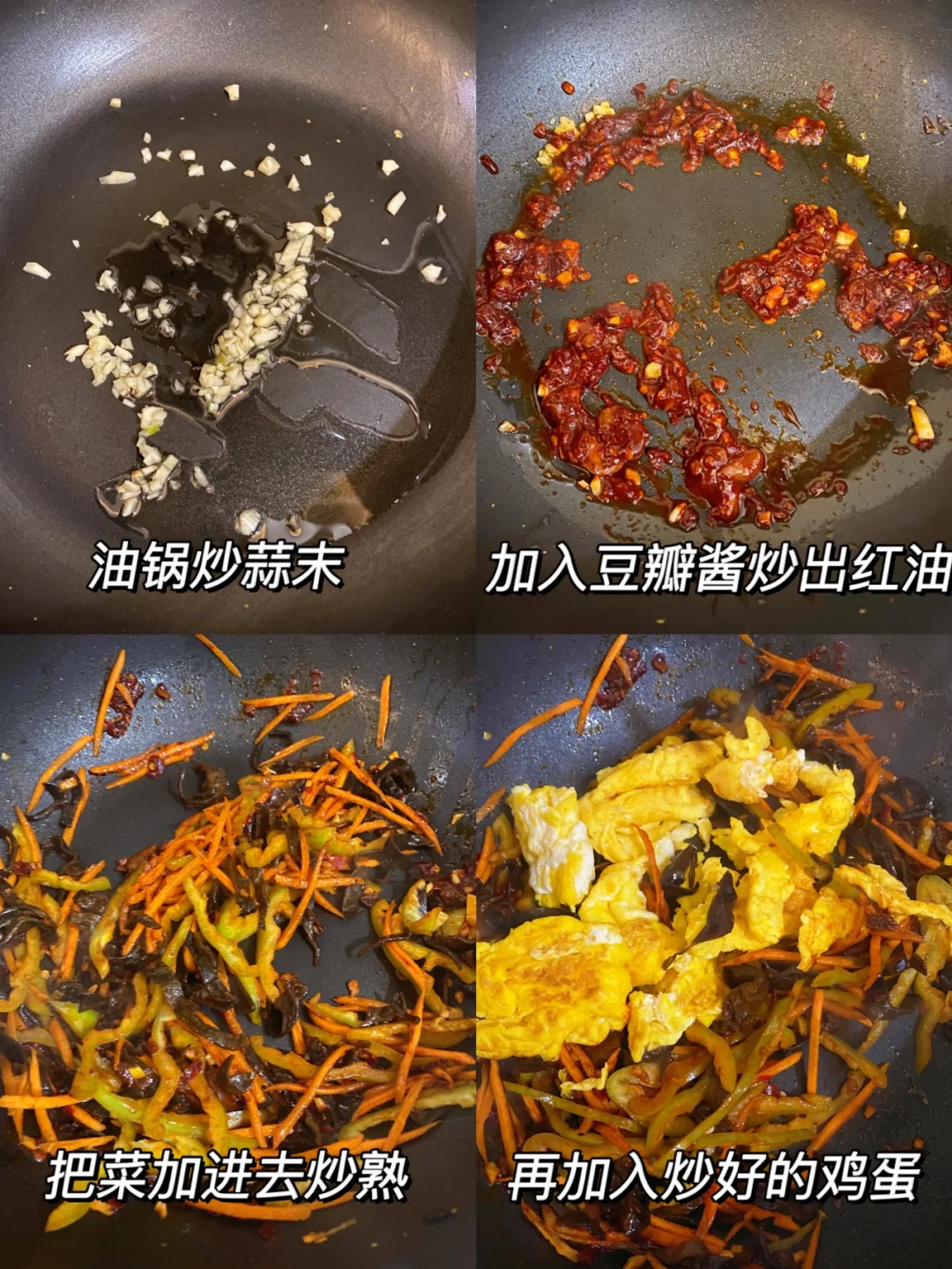 哇!这个鱼香鸡蛋真的绝了! 嫌做肉麻烦的,可以试试鸡蛋,无敌好吃! 1⃣️鸡蛋炒散备用,青椒、胡萝卜、木耳切丝 2⃣️油锅炒蒜末, 再加入豆瓣酱炒出红油, 把配菜放进去炒熟,再加入鸡蛋 3⃣️调个鱼香汁,2勺生抽➕1勺老抽➕1勺淀粉➕1勺陈醋➕1勺蚝油,再稍微加一点糖就行,(太甜我觉得不好吃😂)倒入锅中收汁出锅 完成✅ 真的巨好吃,鸡蛋yyds!! 而且巨下饭,姐妹们都去试试!!