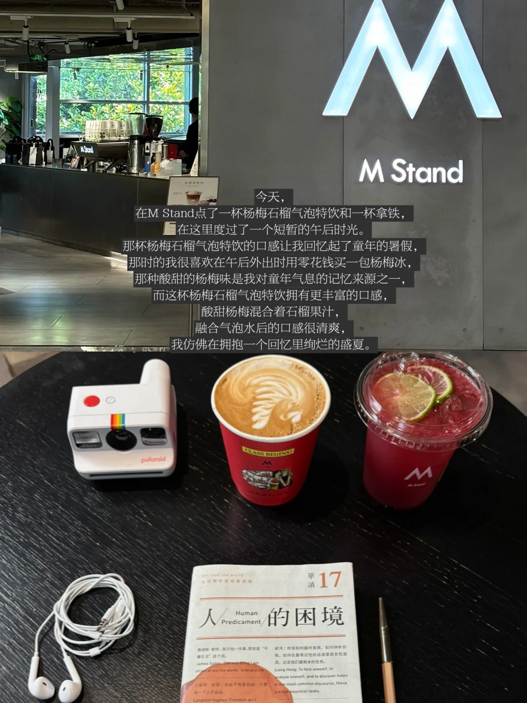 今天,在M Stand点了一杯杨梅石榴气泡特饮和一杯拿铁,在这里度过了一个短暂的午后时光。那杯杨梅石榴气泡特饮的口感让我回忆起了童年的暑假,那时的我很喜欢在午后外出时用零花钱买一包杨梅冰,那种酸甜的杨梅味是我对童年气息的记忆来源之一,而这杯杨梅石榴气泡特饮拥有更丰富的口感,酸甜杨梅混合着石榴果汁,融合气泡水后的口感很清爽,我仿佛在拥抱一个回忆里绚烂的盛夏。