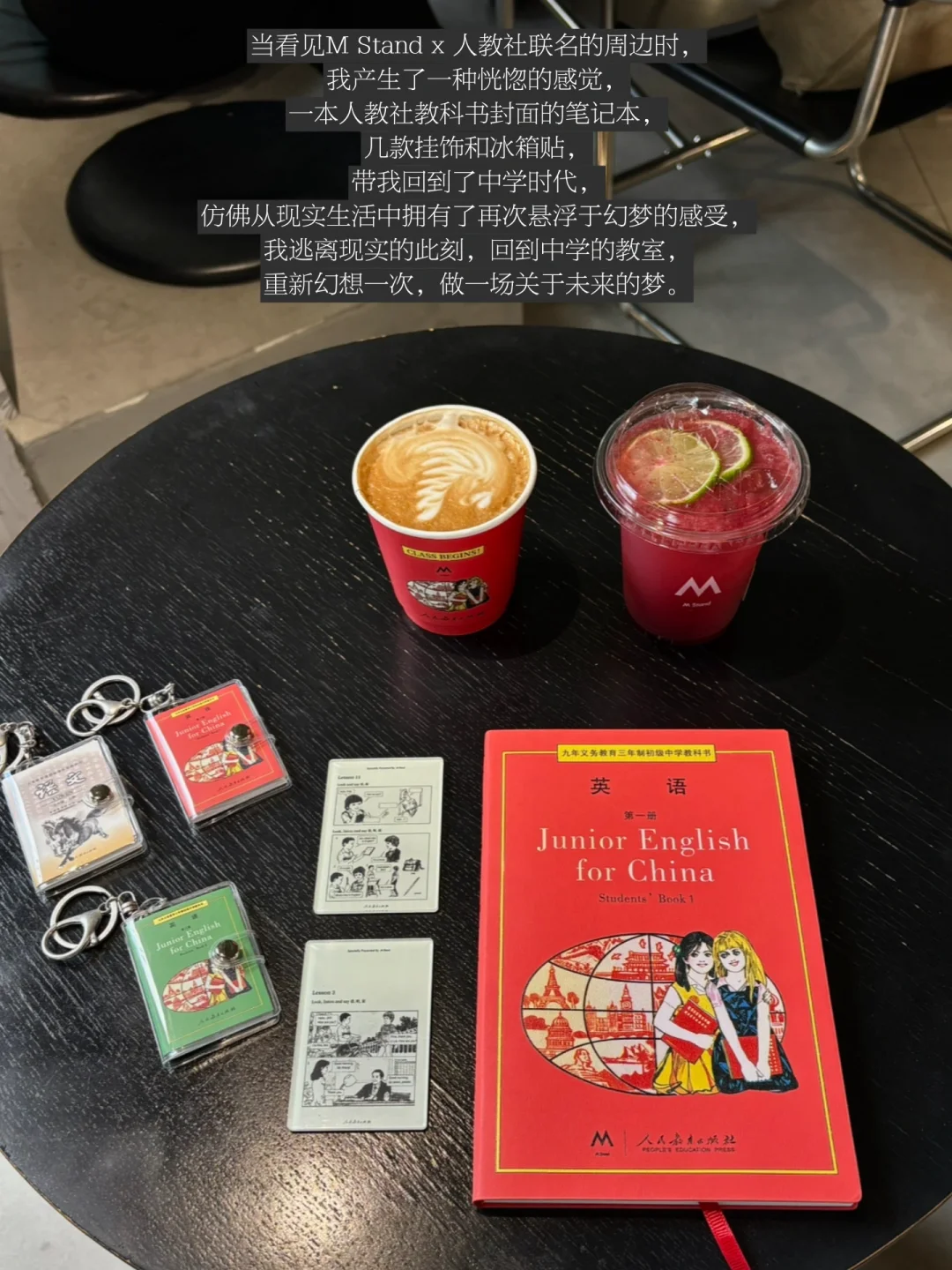 当看见M Stand x 人教社联名的周边时,我产生了一种恍惚的感觉,一本人教社教科书封面的笔记本,几款挂饰和冰箱贴,带我回到了中学时代,仿佛从现实生活中拥有了再次悬浮于幻梦的感受,我逃离现实的此刻,回到中学的教室,重新幻想一次,做一场关于未来的梦。