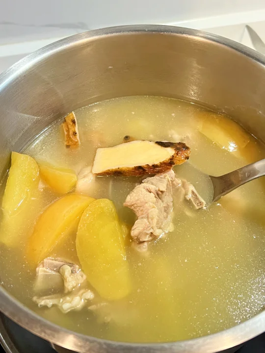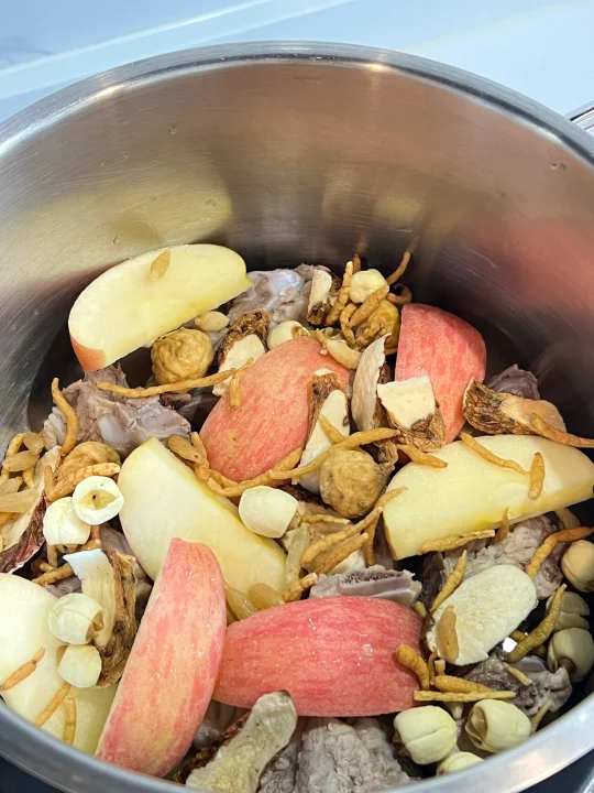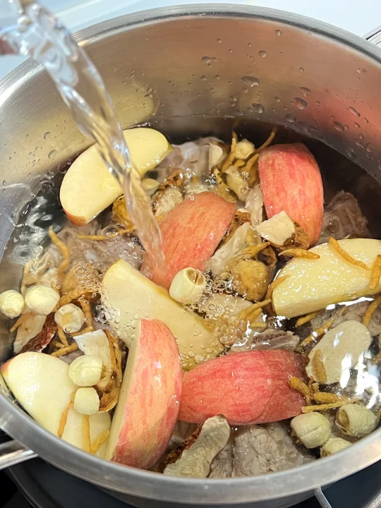 3️⃣将所有食材放进锅中,加1500毫升清水,大火烧开后小火煲1个小时,放盐调味即可。