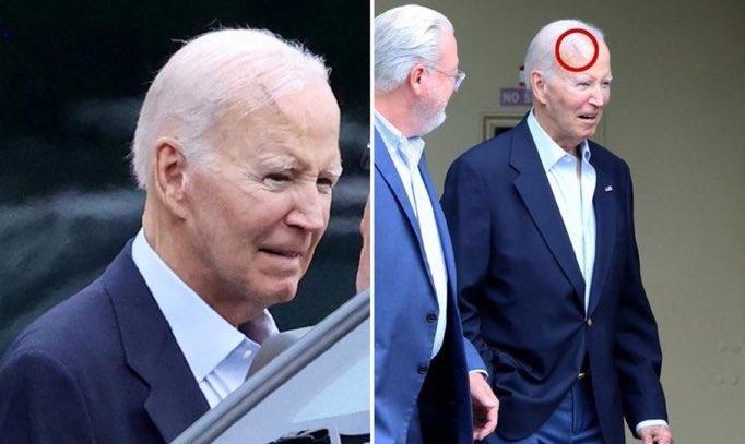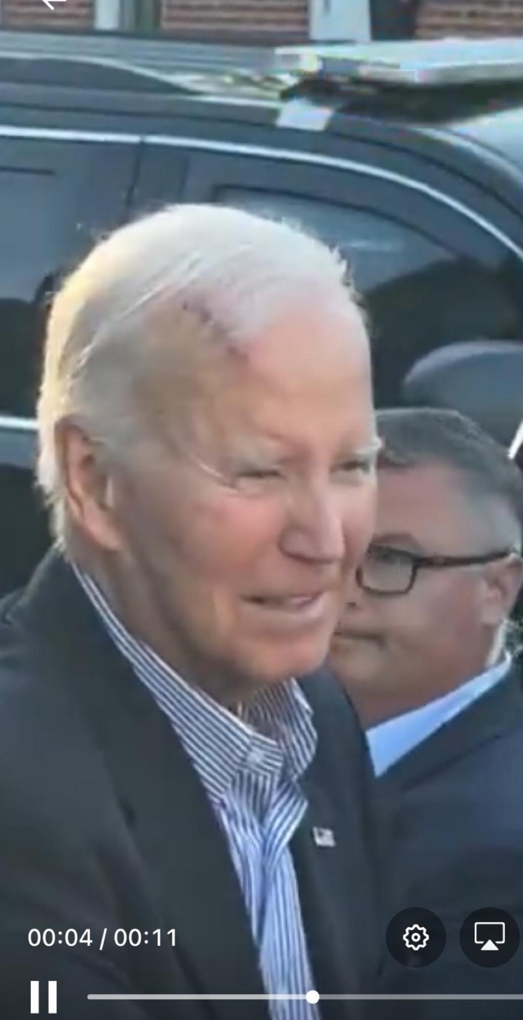 82 岁的美国前总统拜登在切除皮肤癌后头部留下了巨大的疤痕。