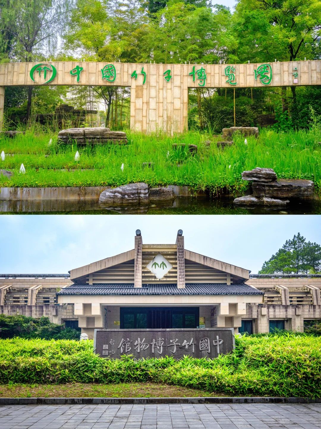 ✅中国竹子博物馆:6000年竹文化浓缩于此,有竹编《清明上河图》、3.3万年前竹化石等,馆外竹林长廊和玻璃栈道是汉服拍照绝佳点位。