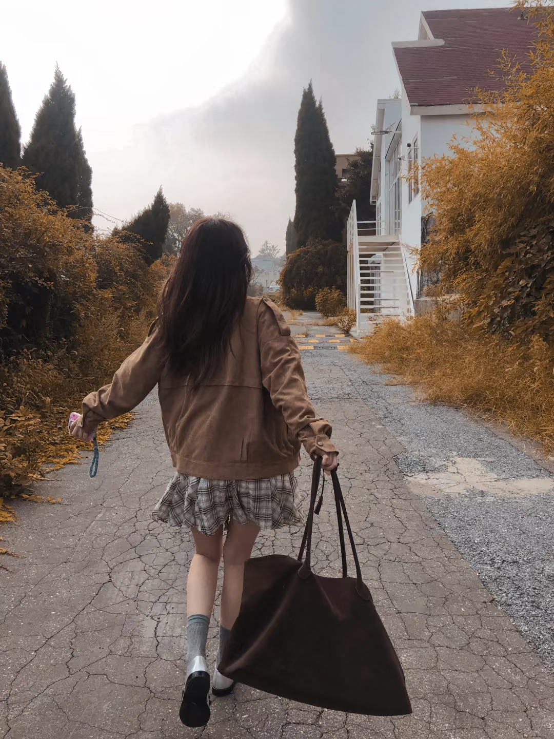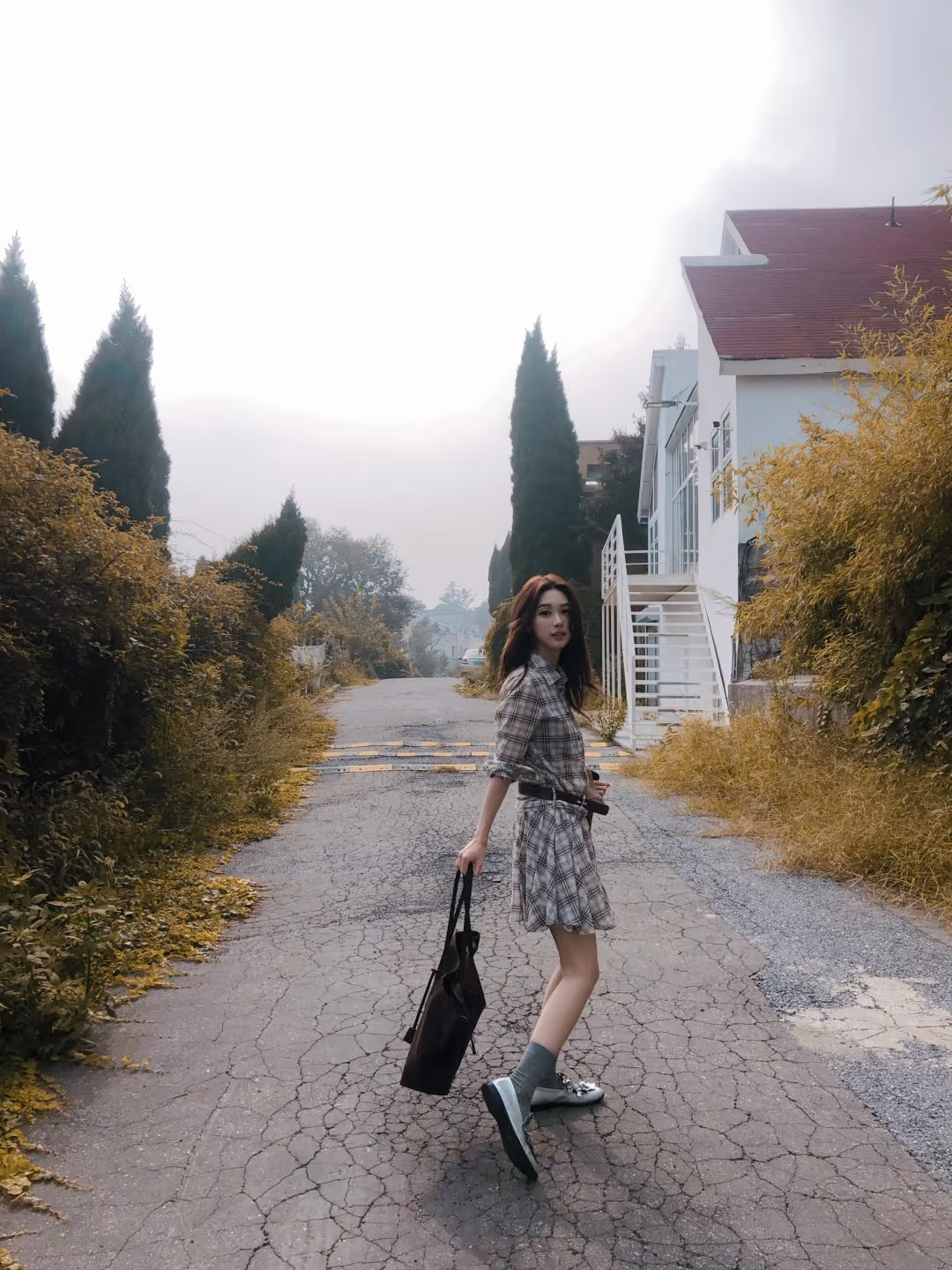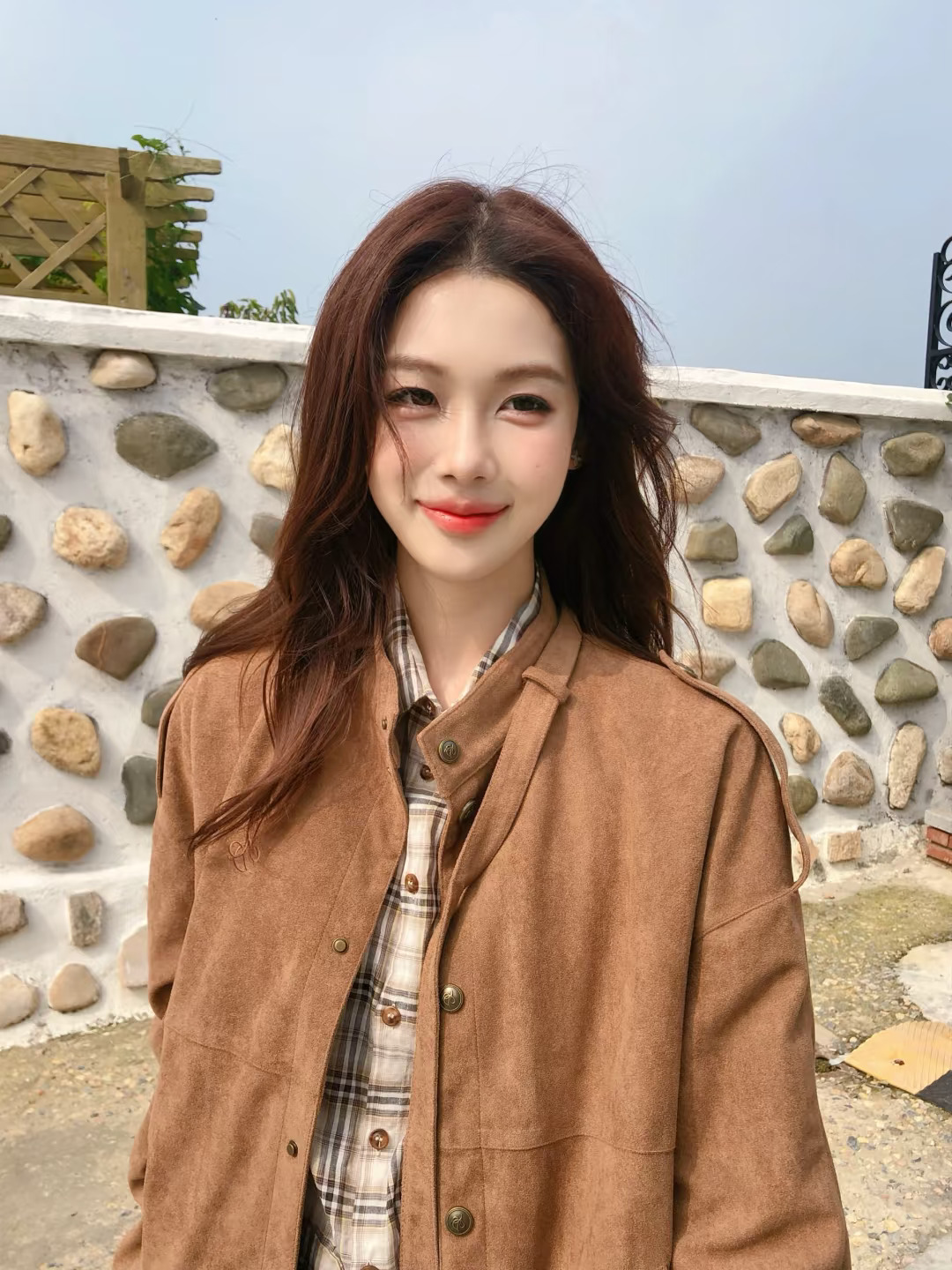 陈瑶秋日穿搭,咖啡色背心牛仔,轻曼时尚