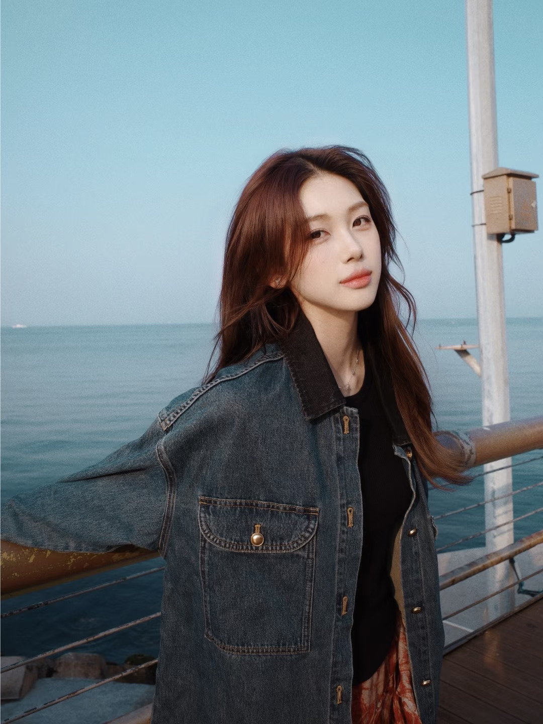 陈瑶秋日穿搭,咖啡色背心牛仔,轻曼时尚